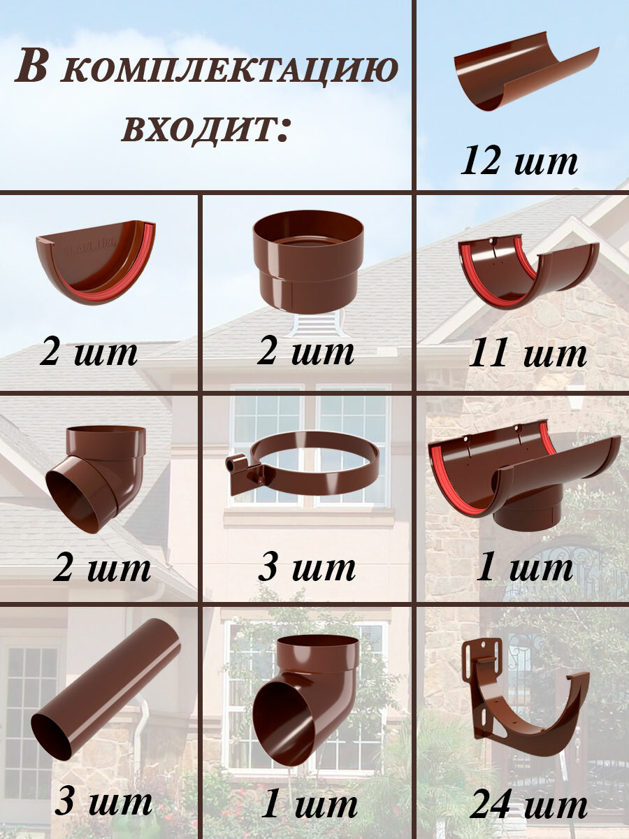 Водосточная система Grand Line 12 м по 1 метру (один слив) 120мм/90мм коричневый водосток для крыши пластиковый Гранд Лайн ( RAL 8017 шоколад ) комплект ПВХ: сравнение цен, характеристики, фото, актуальное наличие и цены.