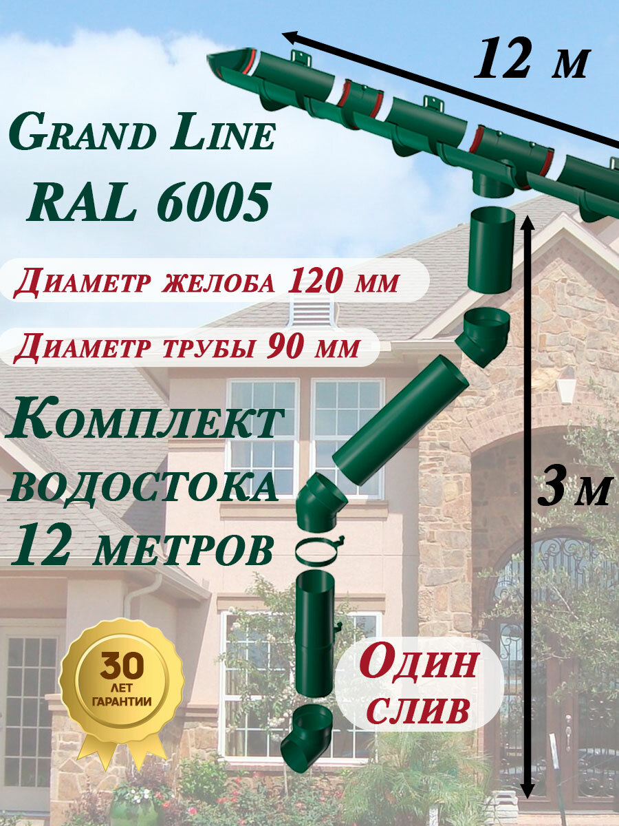 Водосточная система Grand Line 12 м по 1 метру (один слив) 120мм/90мм зеленый водосток для крыши пластиковый Гранд Лайн ( RAL 6005 мох ) комплект ПВХ: сравнение цен, характеристики, фото, актуальное наличие и цены.