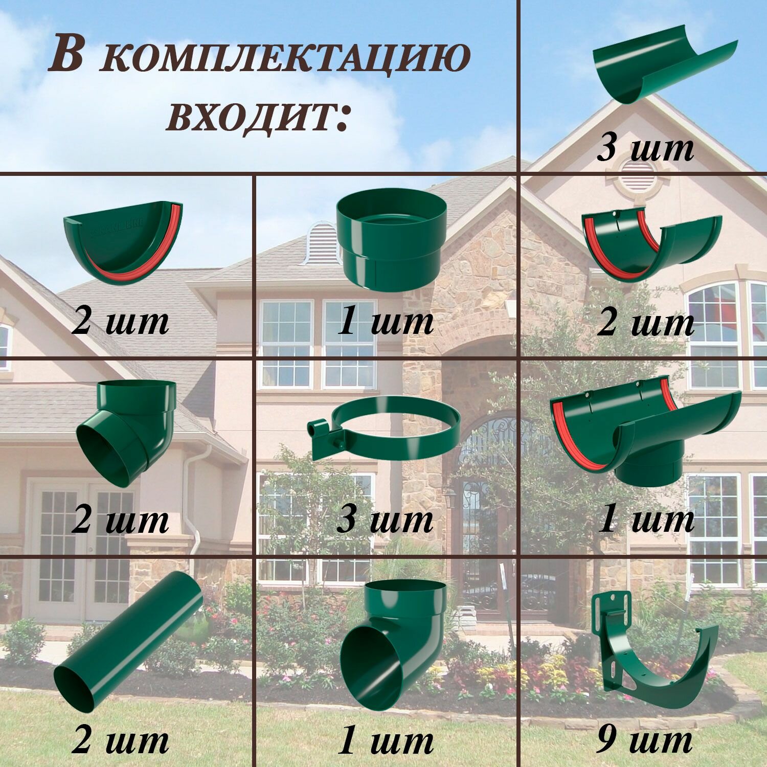 Водосточная система Grand Line 4,5 м ( 120мм/90мм ) зеленый водосток для крыши пластиковый Гранд Лайн ( RAL 6005 мох ) комплект ПВХ: сравнение цен, характеристики, фото, актуальное наличие и цены.