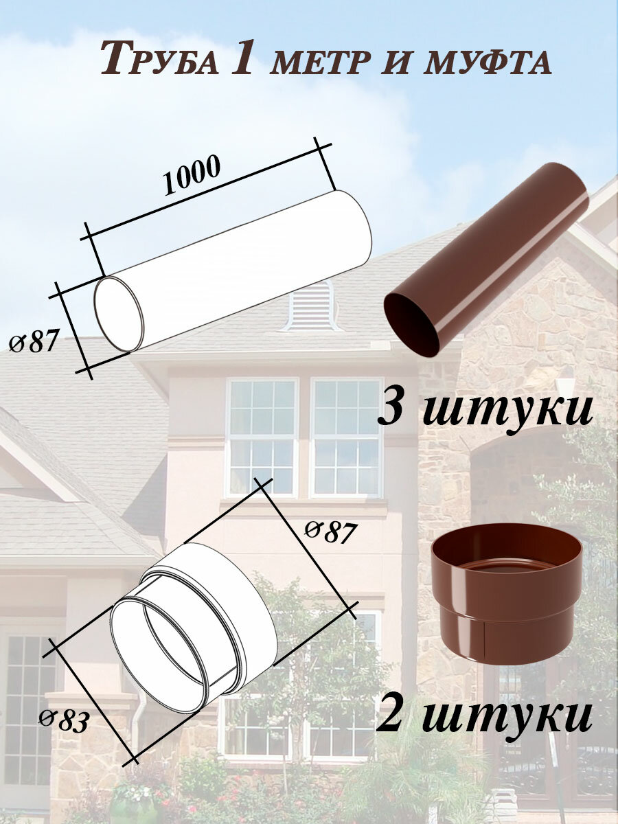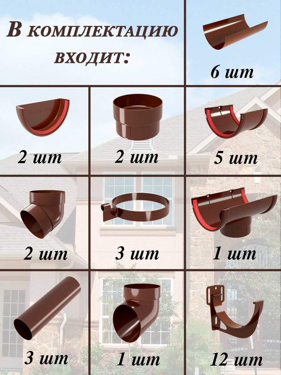 Купить Водосточная система Grand Line 6 м по 1 метру ( 120мм/90мм ) коричневый водосток для крыши пластиковый Гранд Лайн ( RAL 8017 шоколад ) комплект ПВХ 1м с доставкой по всей России.