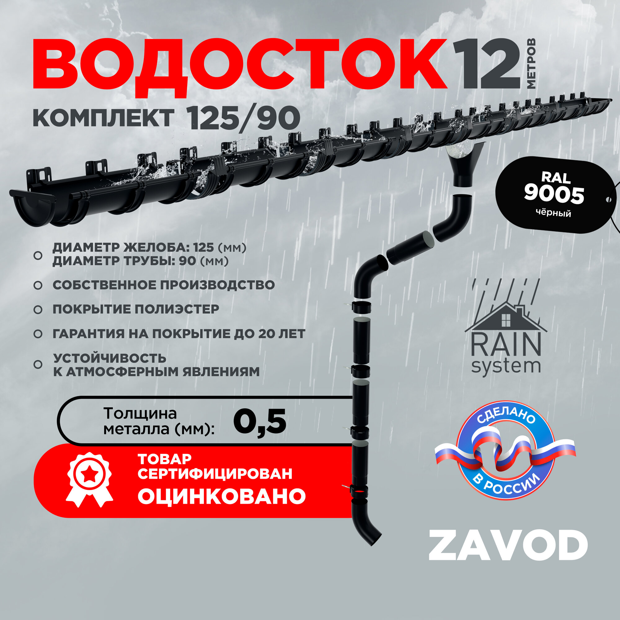 Купить Водосточная система RAIN SYSTEM/ Комплект на 12 метров, цвет 9005 с доставкой по всей России. Водосточная система RAIN SYSTEM/ Комплект на 12 метров, цвет 9005: сравнение цен, характеристики, фото, актуальное наличие и цены.
