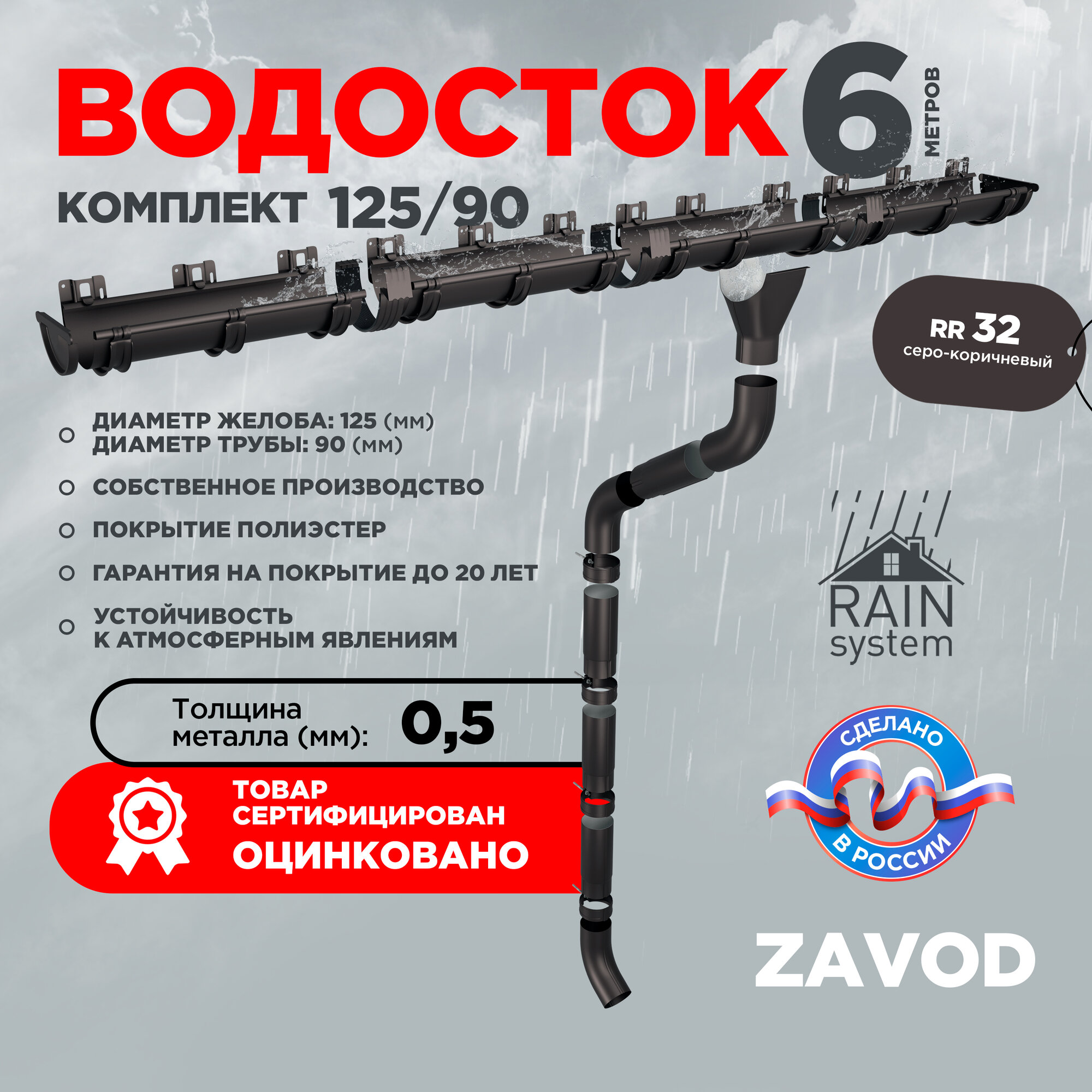 Купить Водосточная система RAIN SYSTEM/ Комплект на 6 метров, цвет 8019/ RR 32 с доставкой по всей России. Водосточная система RAIN SYSTEM/ Комплект на 6 метров, цвет 8019/ RR 32: сравнение цен, характеристики, фото, актуальное наличие и цены.