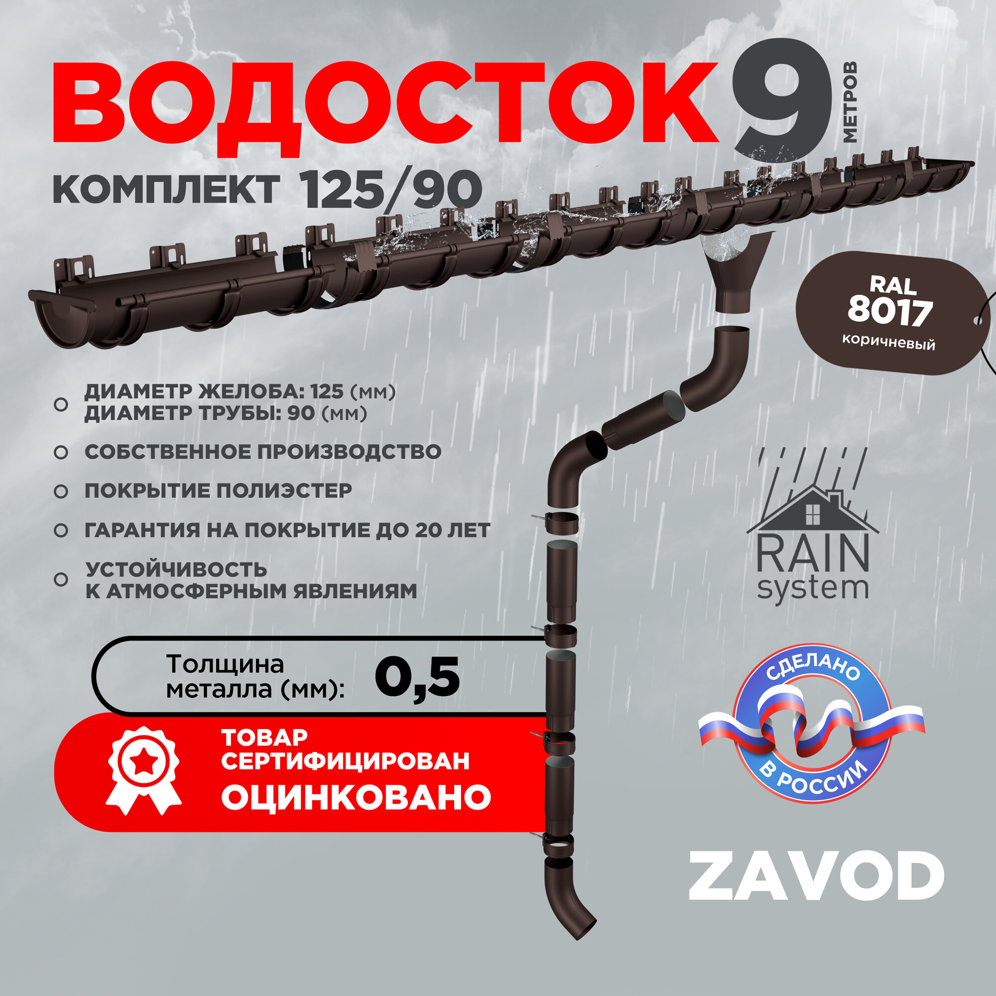 Купить Водосточная система RAIN SYSTEM/ Комплект на 9 метров, цвет 8017 с доставкой по всей России. Водосточная система RAIN SYSTEM/ Комплект на 9 метров, цвет 8017: сравнение цен, характеристики, фото, актуальное наличие и цены.