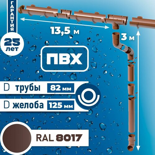 Водосточная система VEGAPLAST(125мм / 82 мм) 13,5 м коричневый (варианты: 9м+4,5м или 7,5м+6м) водосток для крыши пластиковый (RAL 8017 шоколад) комплект ПВХ: сравнение цен, характеристики, фото, актуальное наличие и цены.