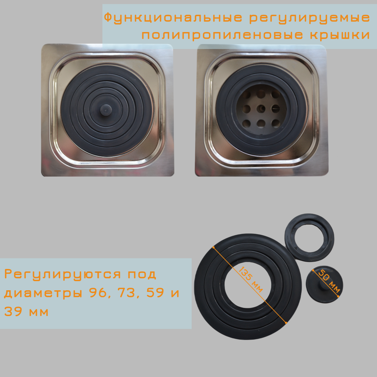Круглые полипропиленовые крышки можно отрегулировать под диаметры 96, 73, 59 и 39 мм, в зависимости от нагреваемой ёмкости.
