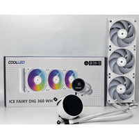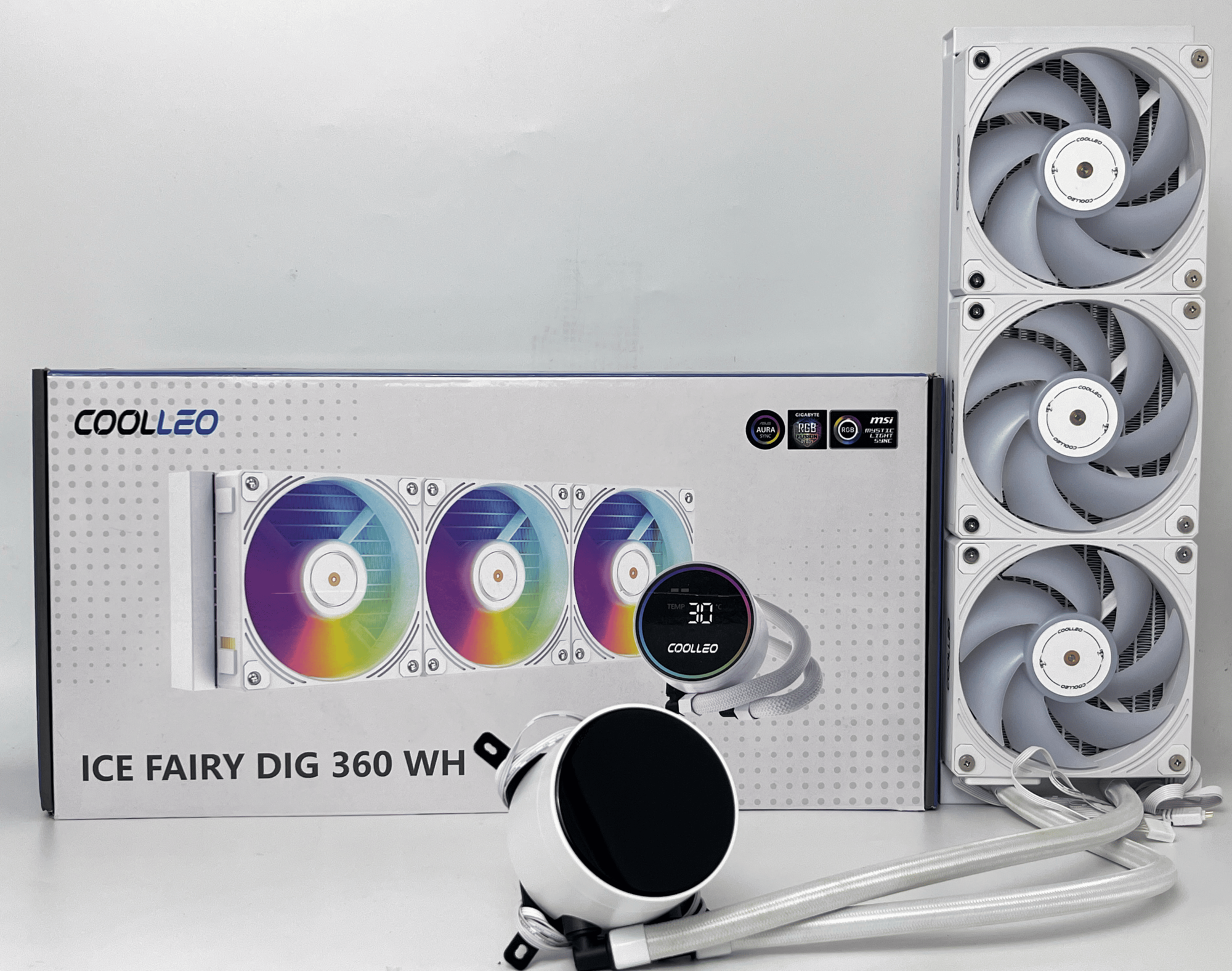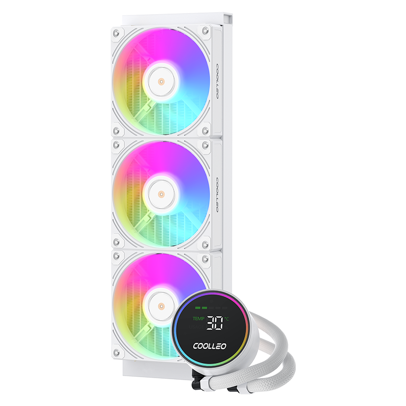 Coolleo ICE Fairy DIG 360 A-RGB White – Трехсекционное водяное охлаждение для процессоров Intel и AMD с цифровым дисплеем.