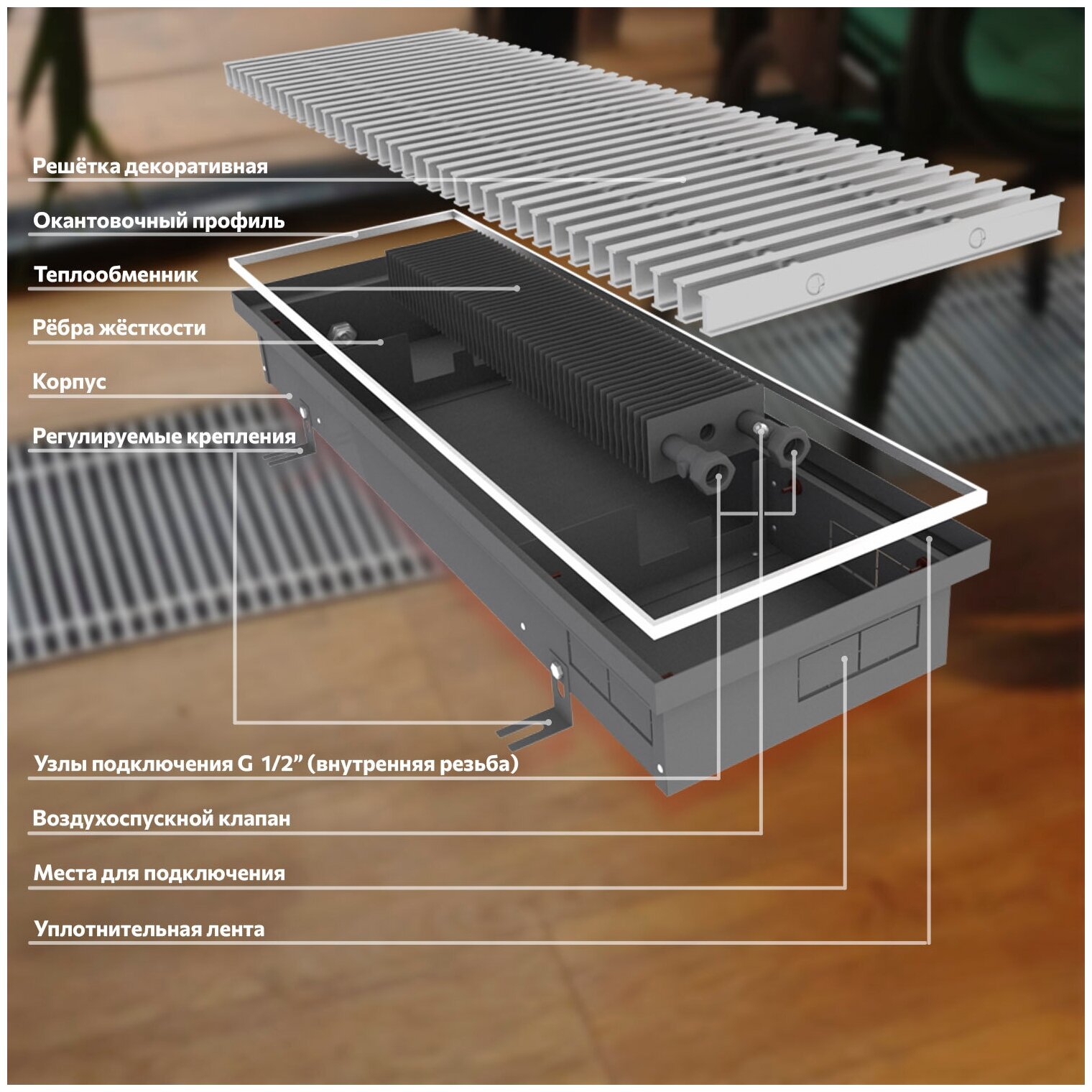 Водяной конвектор с решеткой Techno Usual KVZ 200 — 85 — 700 мм ( встраиваемый / внутрипольный ): сравнение цен, характеристики, фото, актуальное наличие и цены.