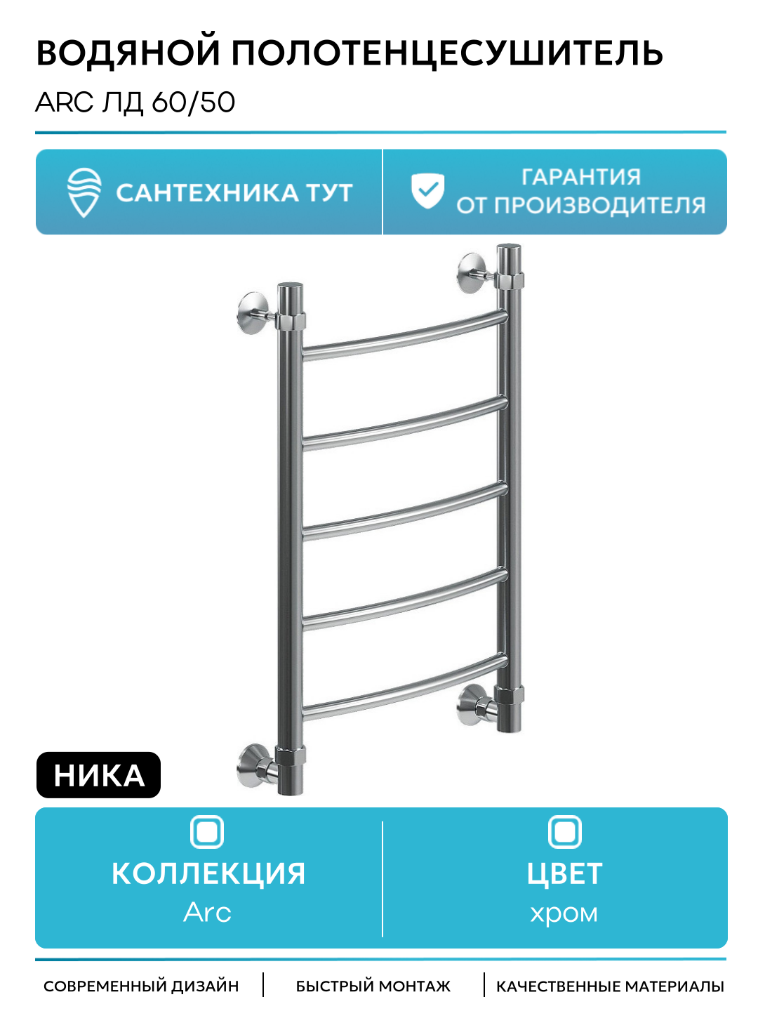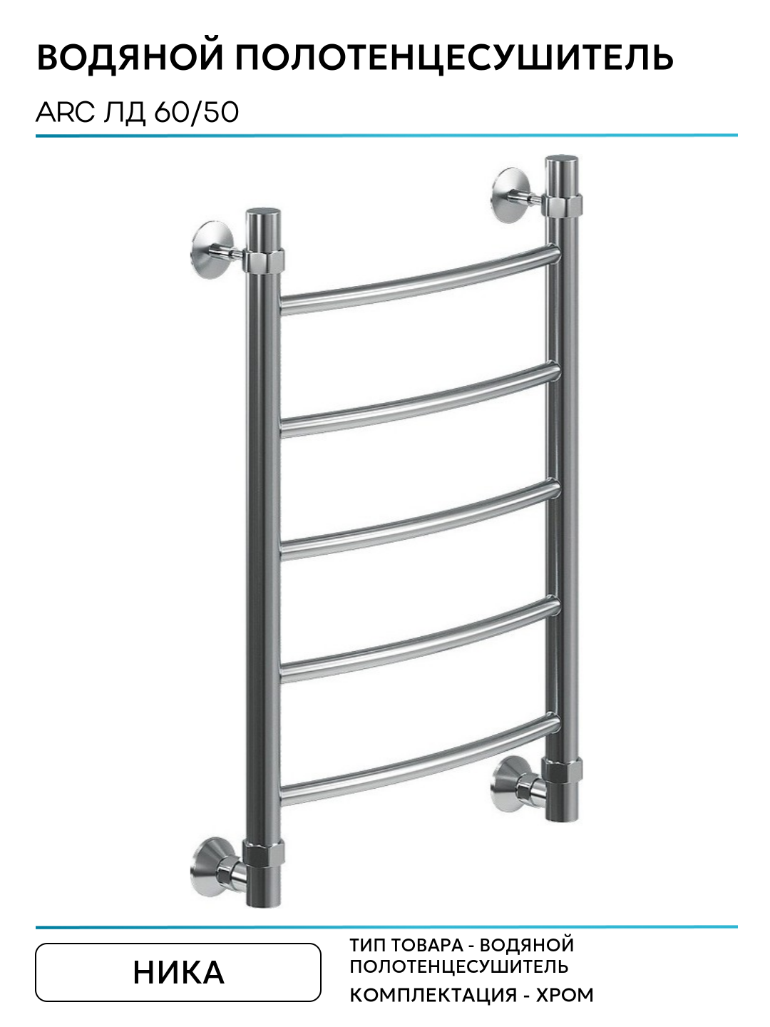 Купить Водяной полотенцесушитель для ванной комнаты Ника Arc ЛД 60/50 Хром с доставкой по всей России. Водяной полотенцесушитель для ванной комнаты Ника Arc ЛД 60/50 Хром: сравнение цен, характеристики, фото, актуальное наличие и цены.
