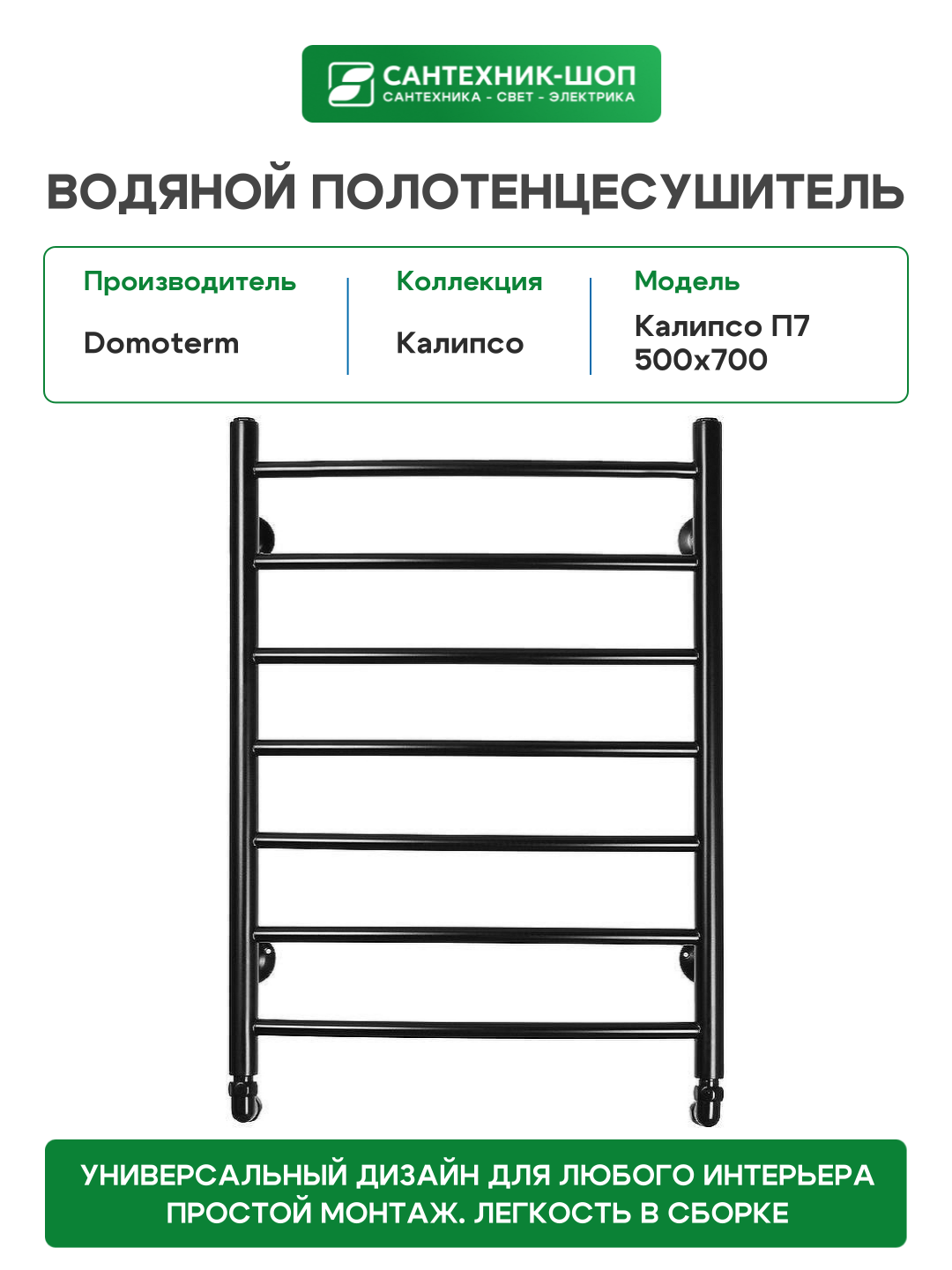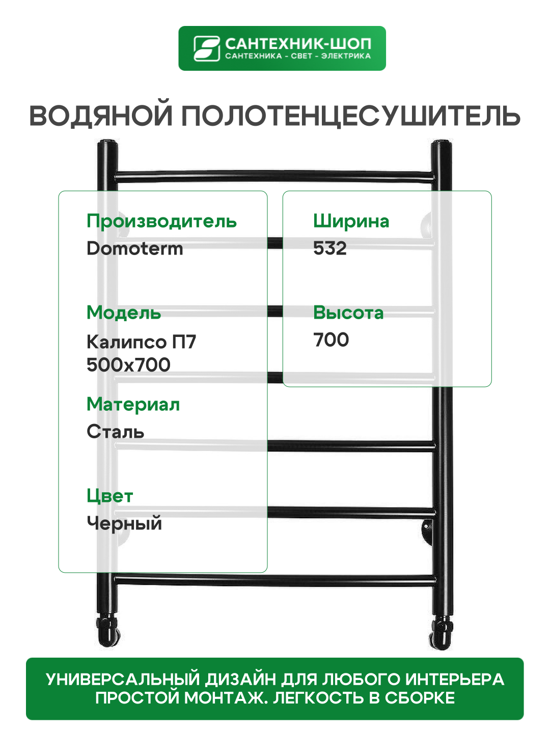 Водяной полотенцесушитель Domoterm Калипсо П7 500×700 Черный матовый нержавеющая сталь: сравнение цен, характеристики, фото, актуальное наличие и цены.