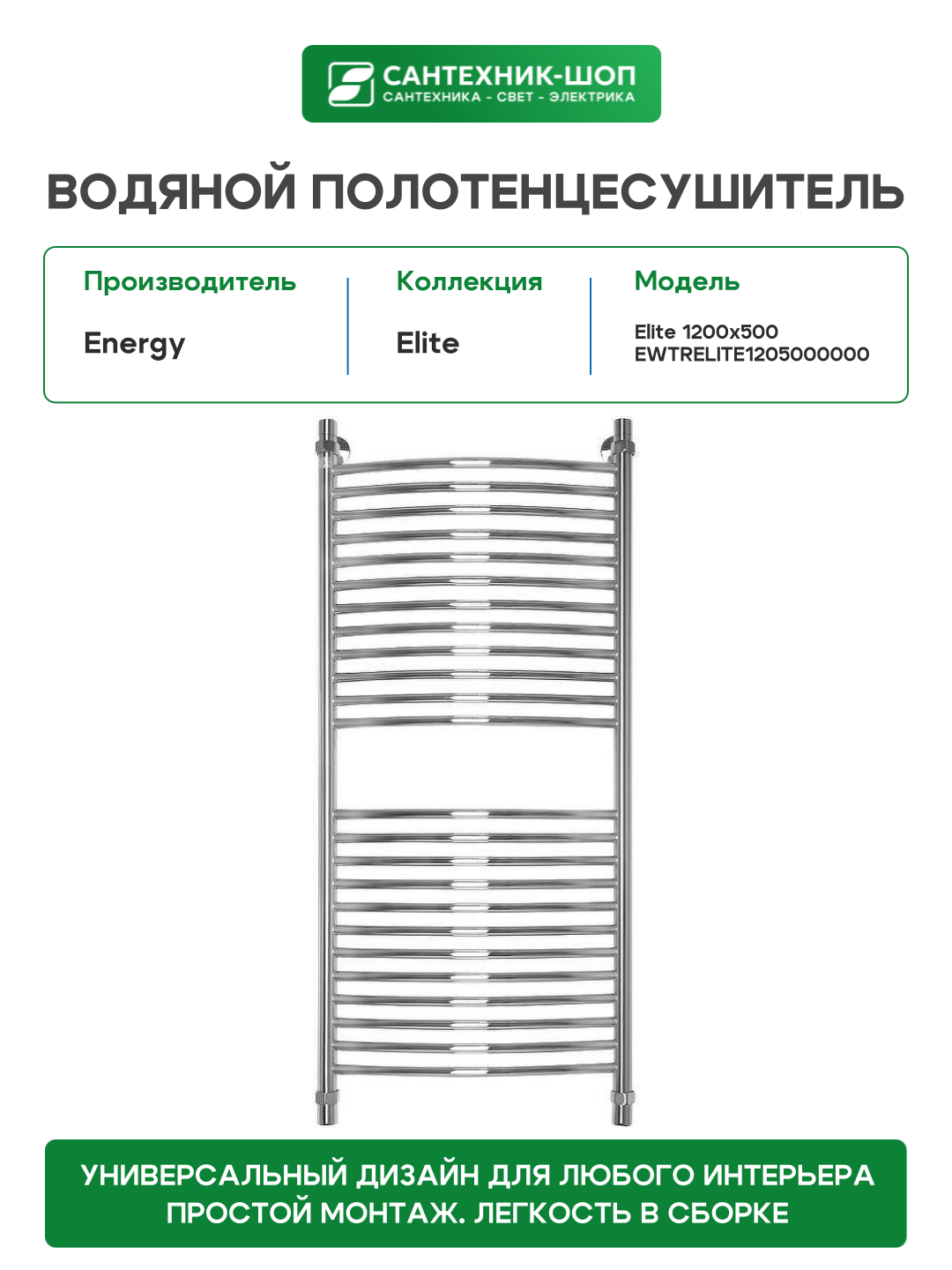 Купить Водяной полотенцесушитель Energy Elite 1200×500 EWTRELITE1205000000 Хром нержавеющая сталь с доставкой по всей России. Водяной полотенцесушитель Energy Elite 1200×500 EWTRELITE1205000000 Хром нержавеющая сталь: сравнение цен, характеристики, фото, актуальное наличие и цены.