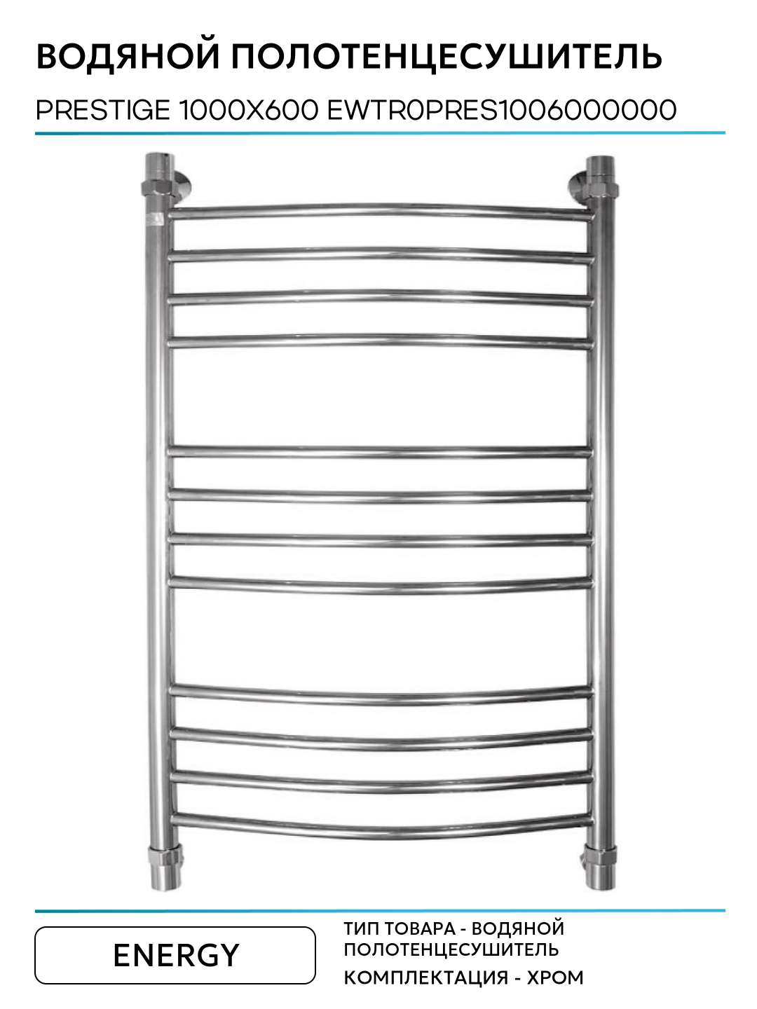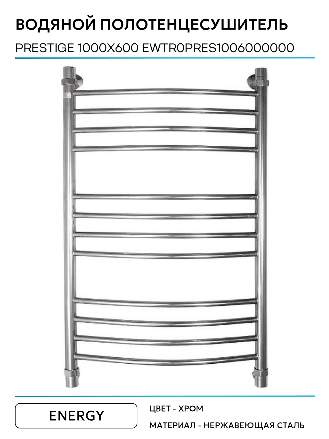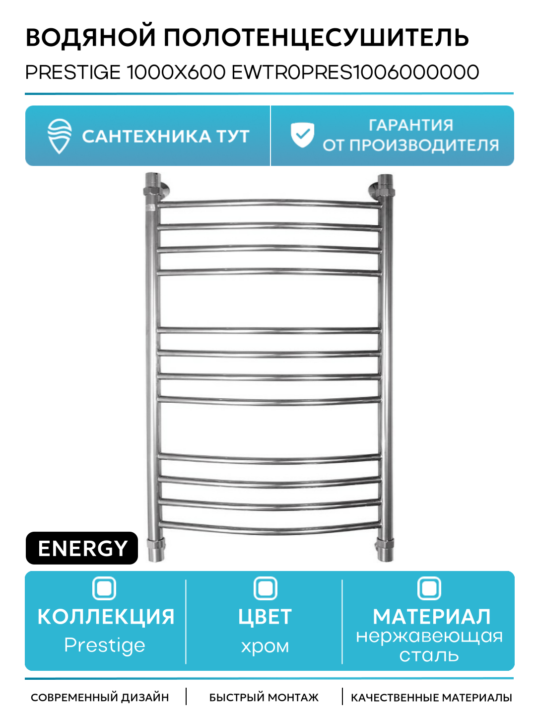 Водяной полотенцесушитель Energy Prestige 1000×600 EWTR0PRES1006000000 Хром нержавеющая сталь: сравнение цен, характеристики, фото, актуальное наличие и цены.