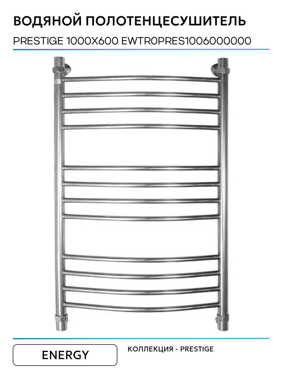 Купить Водяной полотенцесушитель Energy Prestige 1000×600 EWTR0PRES1006000000 Хром нержавеющая сталь с доставкой по всей России.