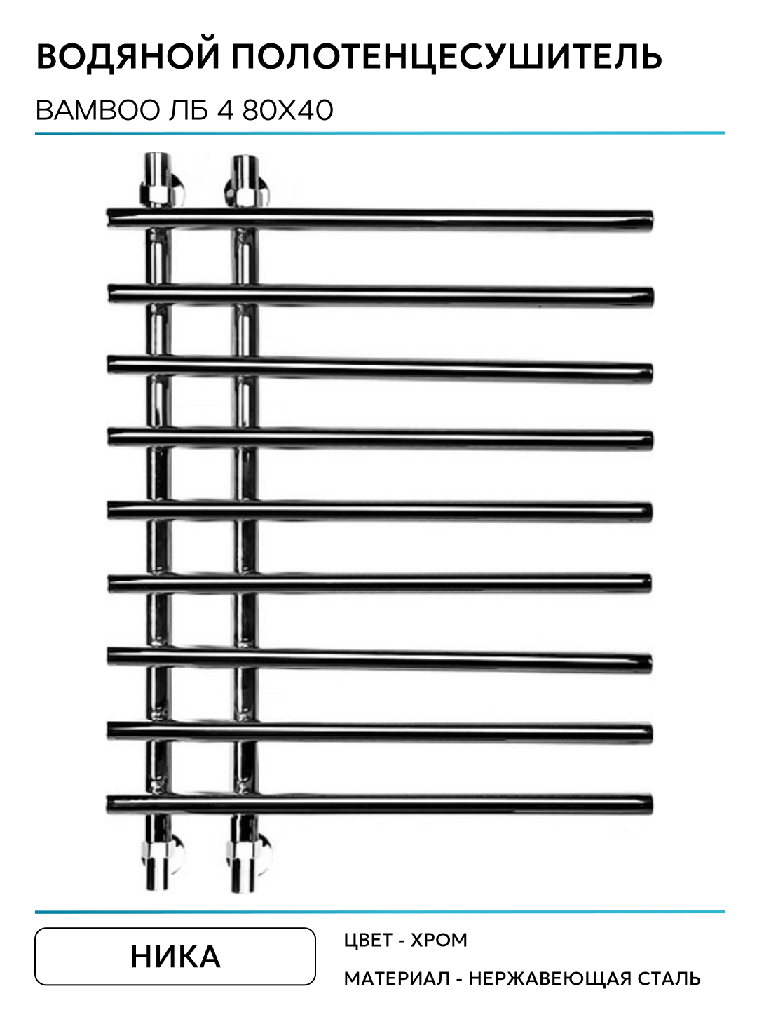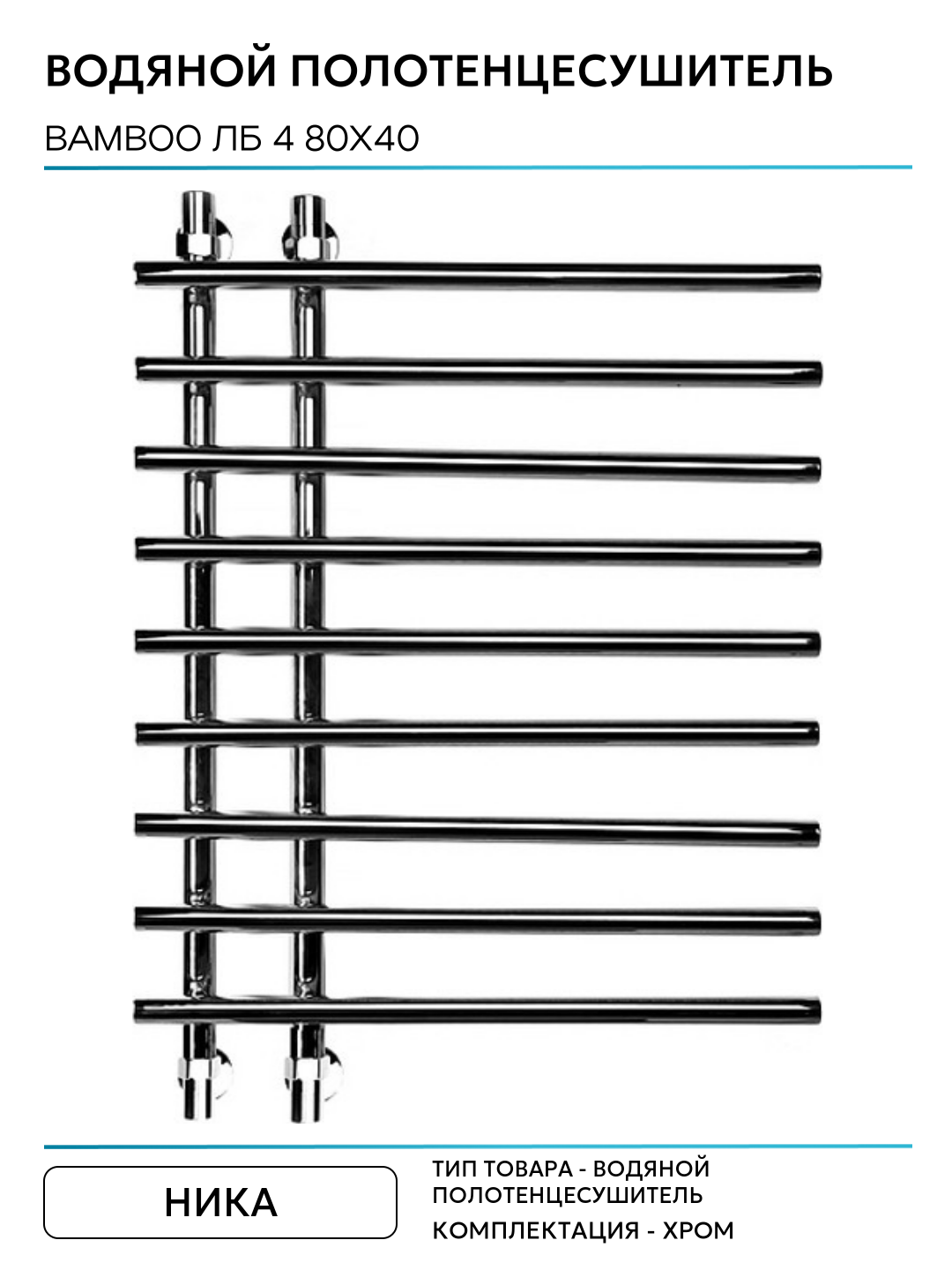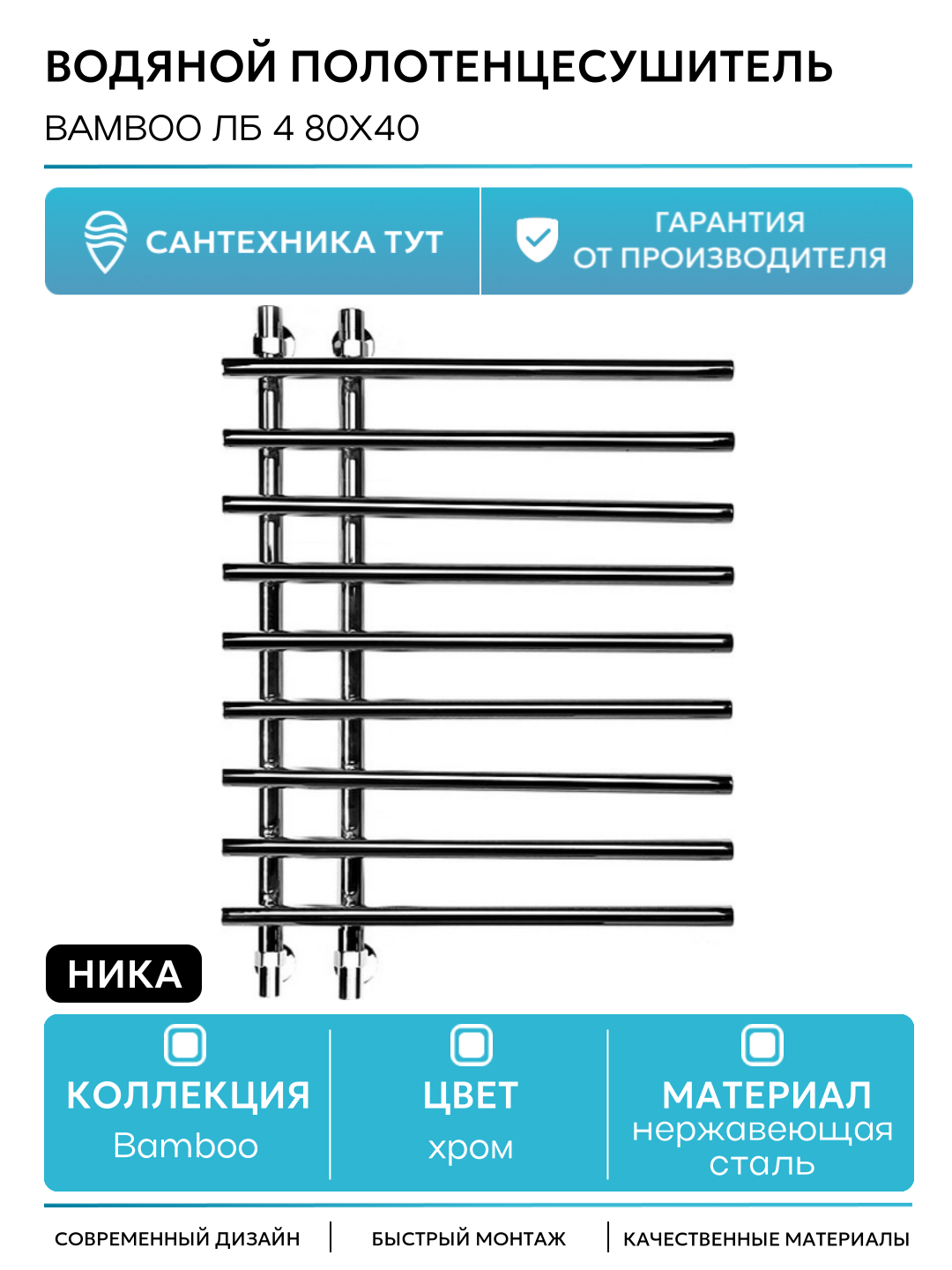 Купить Водяной полотенцесушитель Ника Bamboo ЛБ 4 80×40 Хром нержавеющая сталь с доставкой по всей России. Водяной полотенцесушитель Ника Bamboo ЛБ 4 80×40 Хром нержавеющая сталь: сравнение цен, характеристики, фото, актуальное наличие и цены.