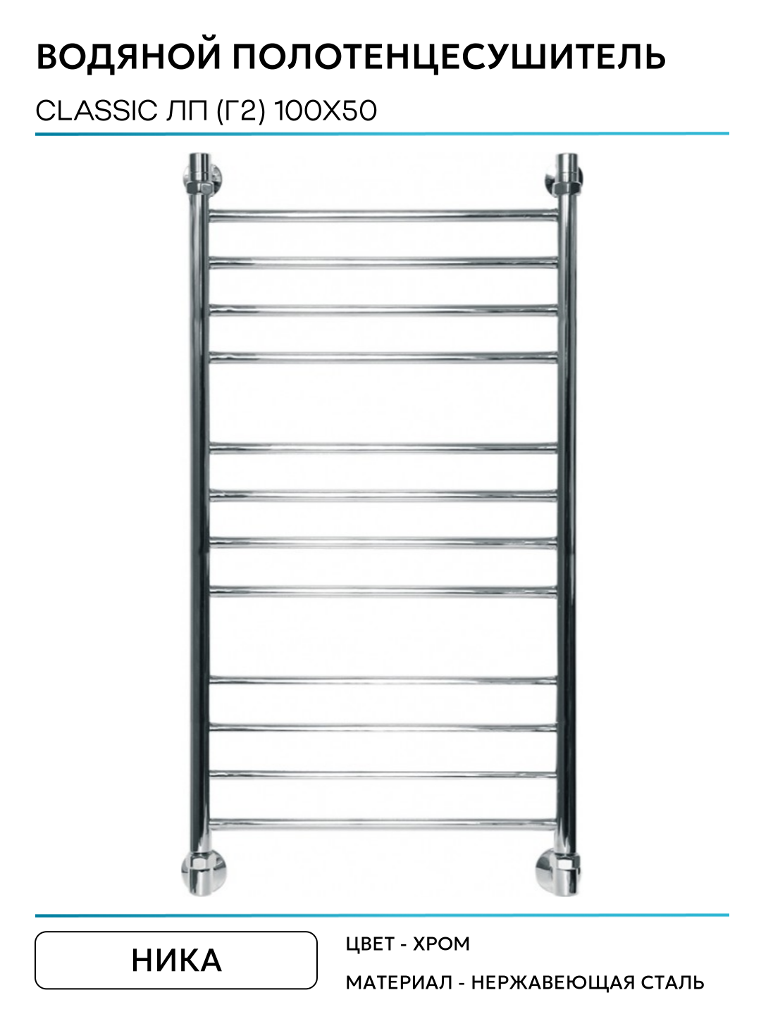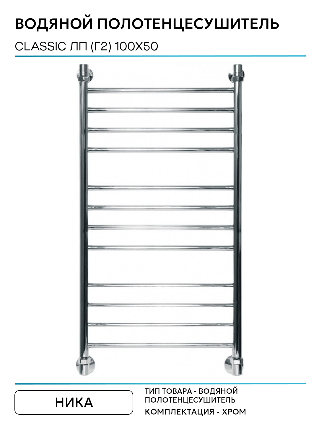Водяной полотенцесушитель Ника Classic ЛП (г2) 100×50 Хром нержавеющая сталь: сравнение цен, характеристики, фото, актуальное наличие и цены.