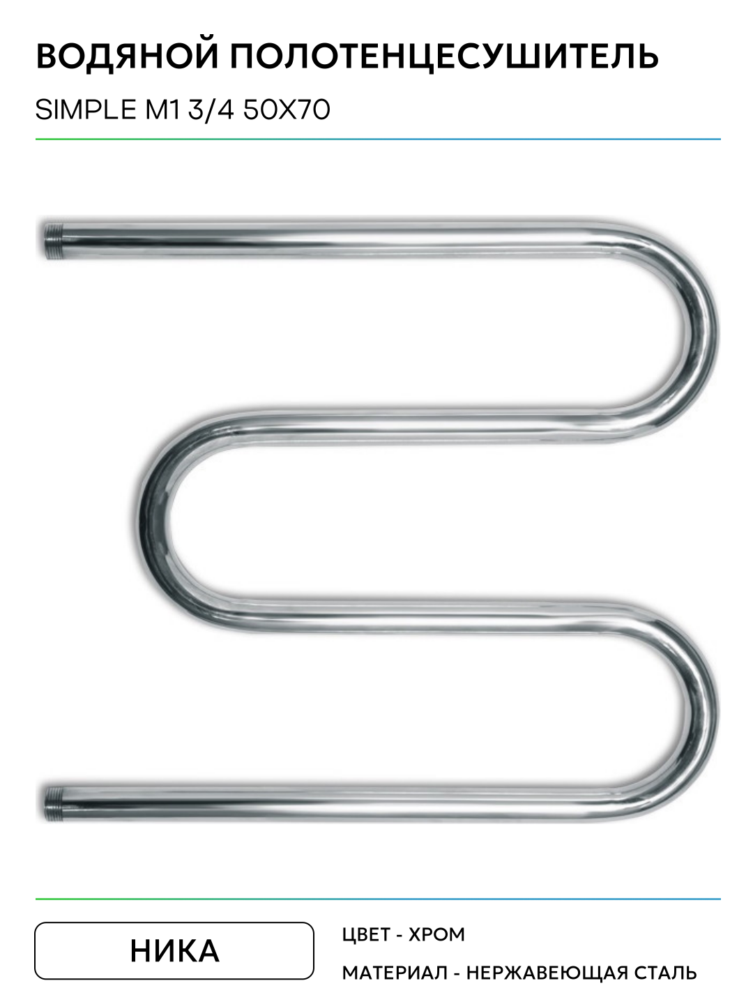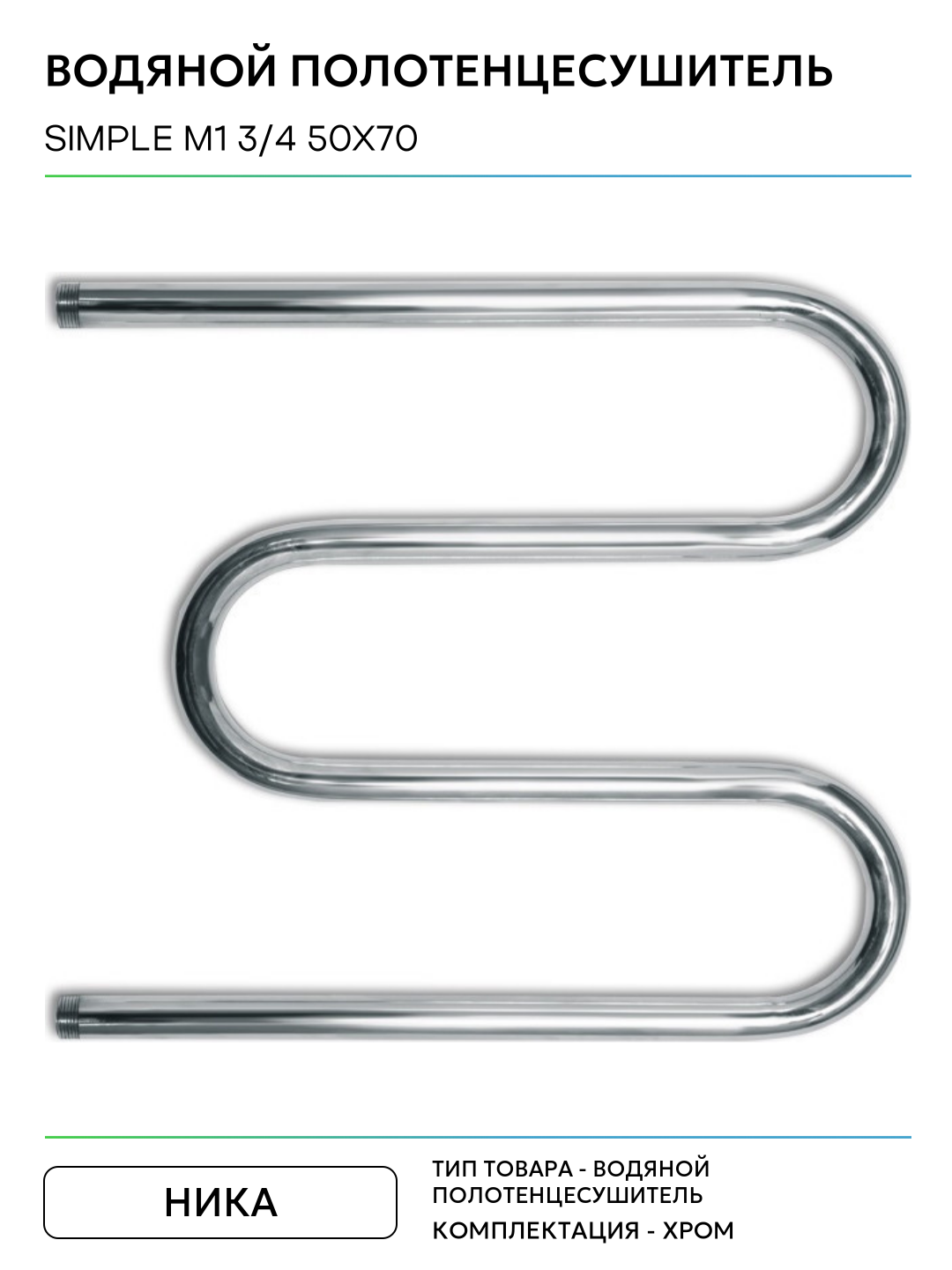 Купить Водяной полотенцесушитель Ника Simple М1 3/4 50×70 Хром нержавеющая сталь с доставкой по всей России. Водяной полотенцесушитель Ника Simple М1 3/4 50×70 Хром нержавеющая сталь: сравнение цен, характеристики, фото, актуальное наличие и цены.