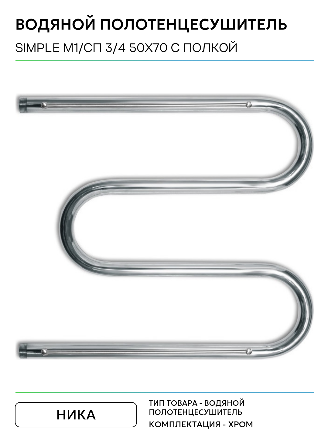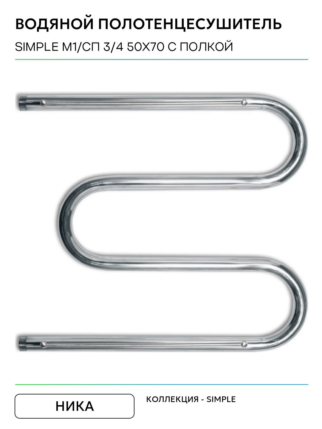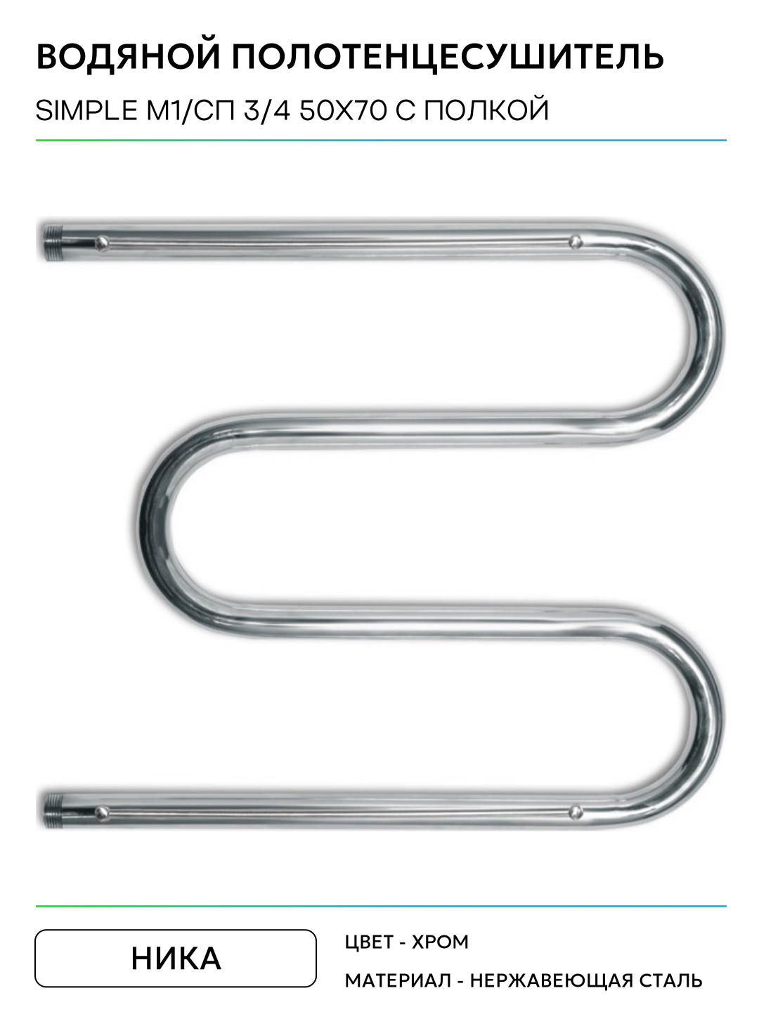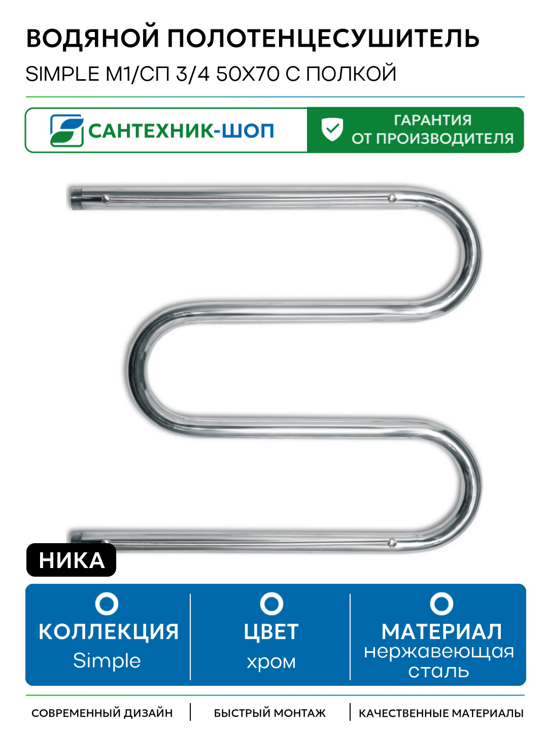 Водяной полотенцесушитель Ника Simple М1/СП 3/4 50×70 с полкой Хром нержавеющая сталь: сравнение цен, характеристики, фото, актуальное наличие и цены.