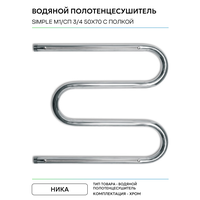 Купить Водяной полотенцесушитель Ника Simple М1/СП 3/4 50×70 с полкой Хром нержавеющая сталь с доставкой по всей России.