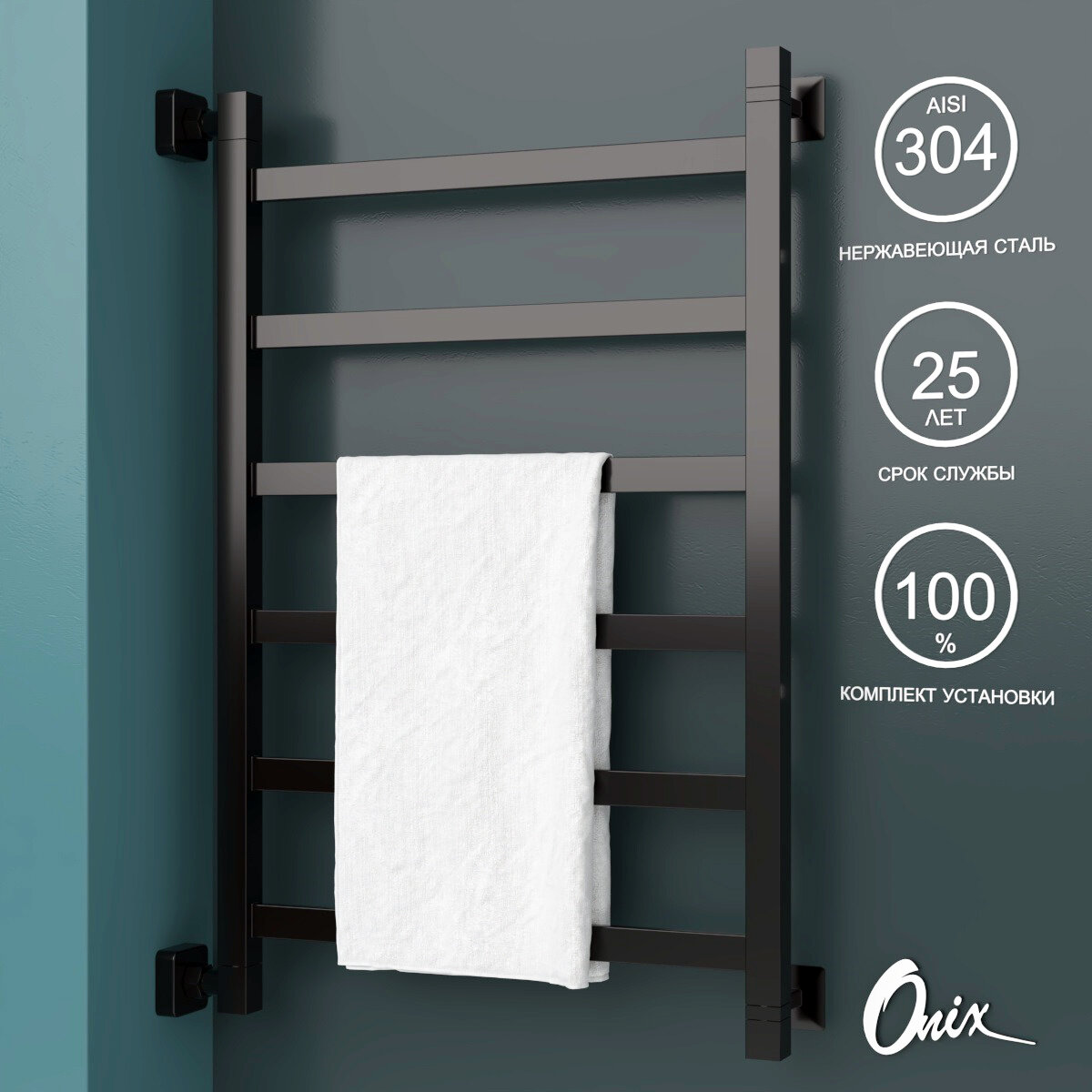 Водяной полотенцесушитель Onix, модель Moon Left Black 500×800, лесенка с боковым подключением слева, черный, полный комплект: сравнение цен, характеристики, фото, актуальное наличие и цены.
