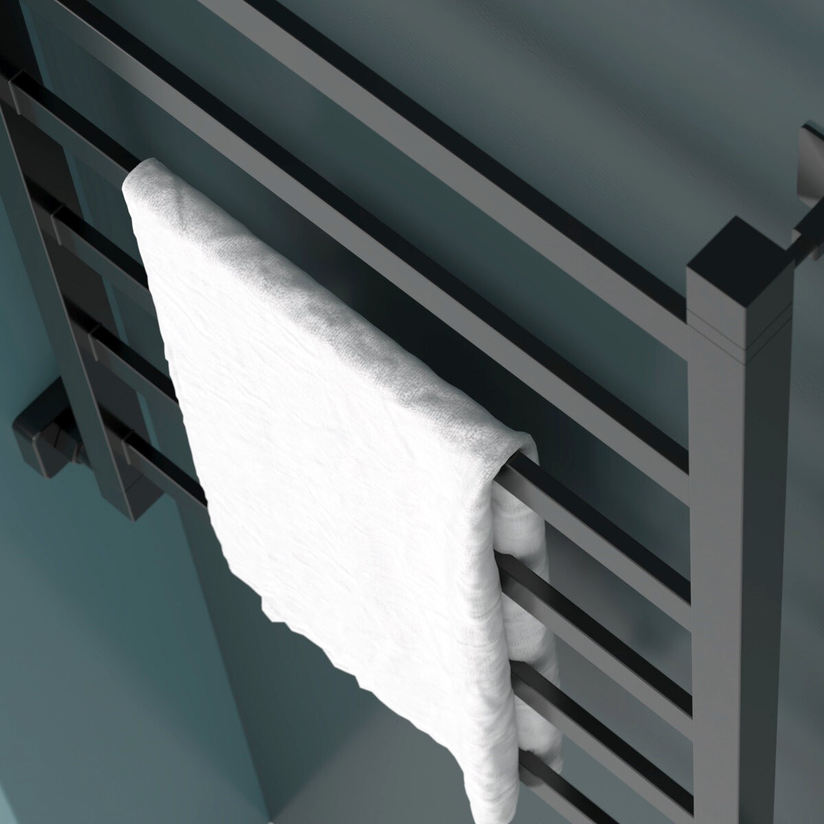 Купить Водяной полотенцесушитель Onix, модель Moon Left Black 500×800, лесенка с боковым подключением слева, черный, полный комплект с доставкой по всей России.