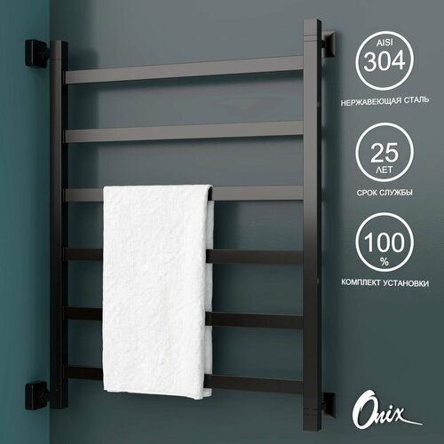Водяной полотенцесушитель Onix, модель Moon Left Black 600×800, лесенка с боковым подключением слева, черный, полный комплект: сравнение цен, характеристики, фото, актуальное наличие и цены.