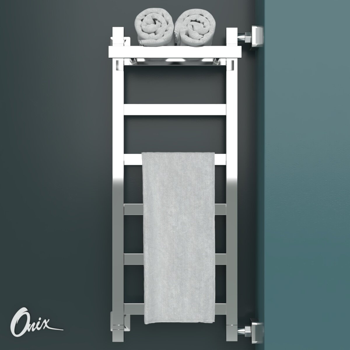 Купить Водяной полотенцесушитель Onix, модель Moon Plus Right 300×800, лесенка с полкой с боковым подключением справа, полный комплект с доставкой по всей России.