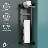 Водяной полотенцесушитель Onix, модель Moon Plus Right Black 200×800, лесенка с полкой с боковым подключением справа, черный, полный комплект: сравнение цен, характеристики, фото, актуальное наличие и цены.