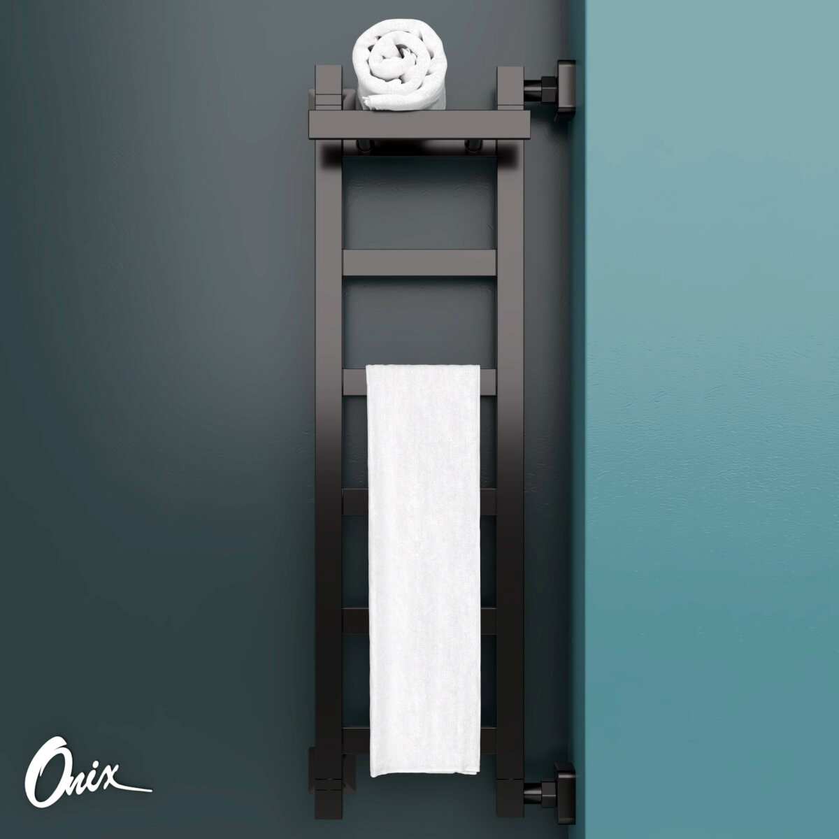 Купить Водяной полотенцесушитель Onix, модель Moon Plus Right Black 200×800, лесенка с полкой с боковым подключением справа, черный, полный комплект с доставкой по всей России.