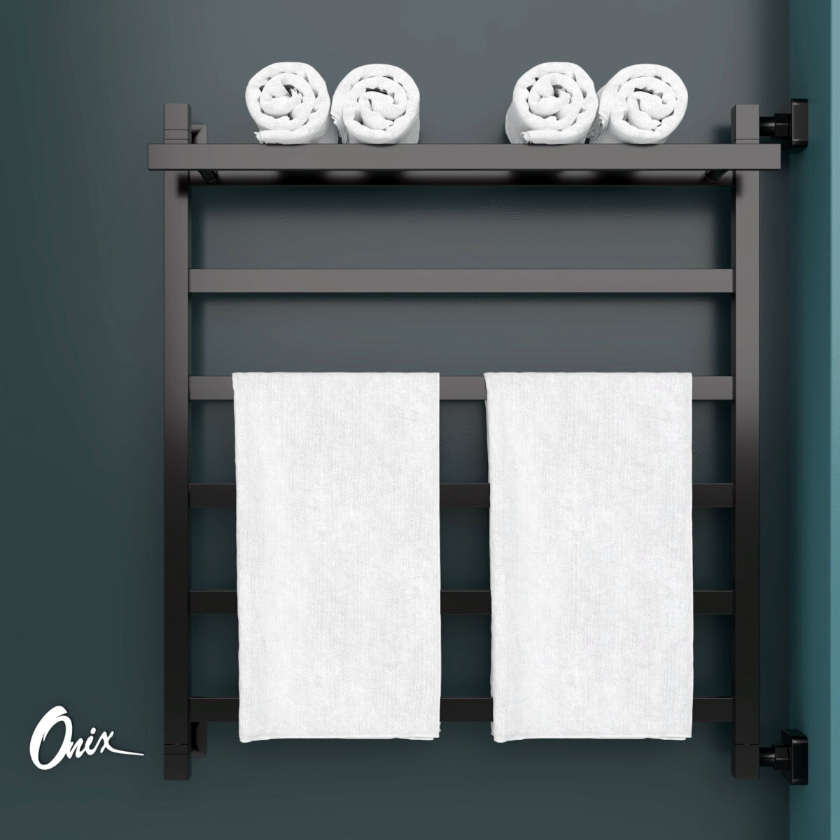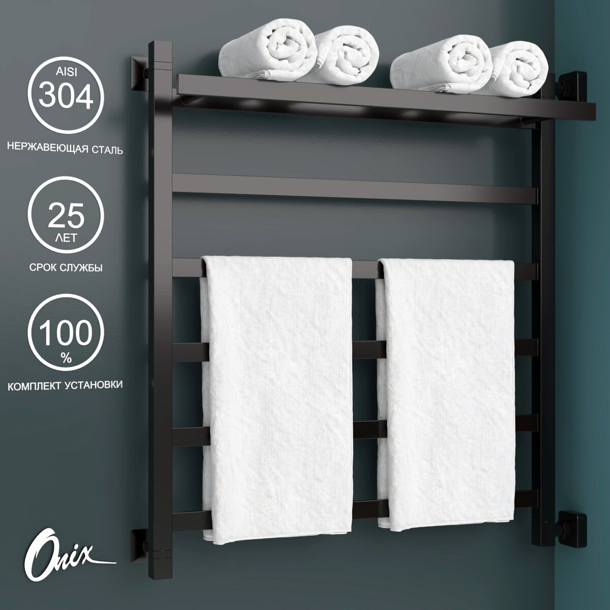 Водяной полотенцесушитель Onix, модель Moon Plus Right Black 700×800, лесенка с полкой с боковым подключением справа, черный, полный комплект: сравнение цен, характеристики, фото, актуальное наличие и цены.