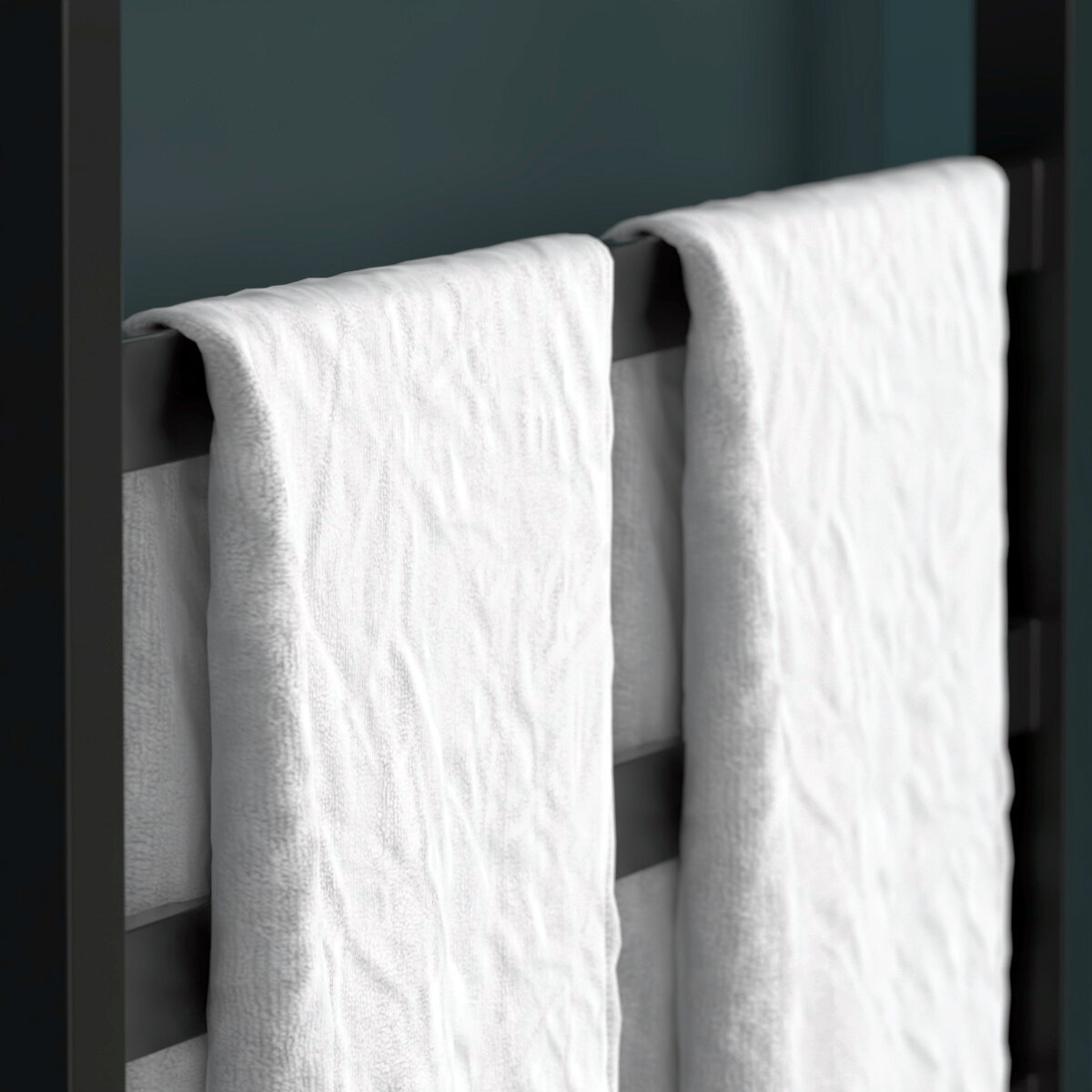Купить Водяной полотенцесушитель Onix, модель Moon Plus Right Black 700×800, лесенка с полкой с боковым подключением справа, черный, полный комплект с доставкой по всей России.