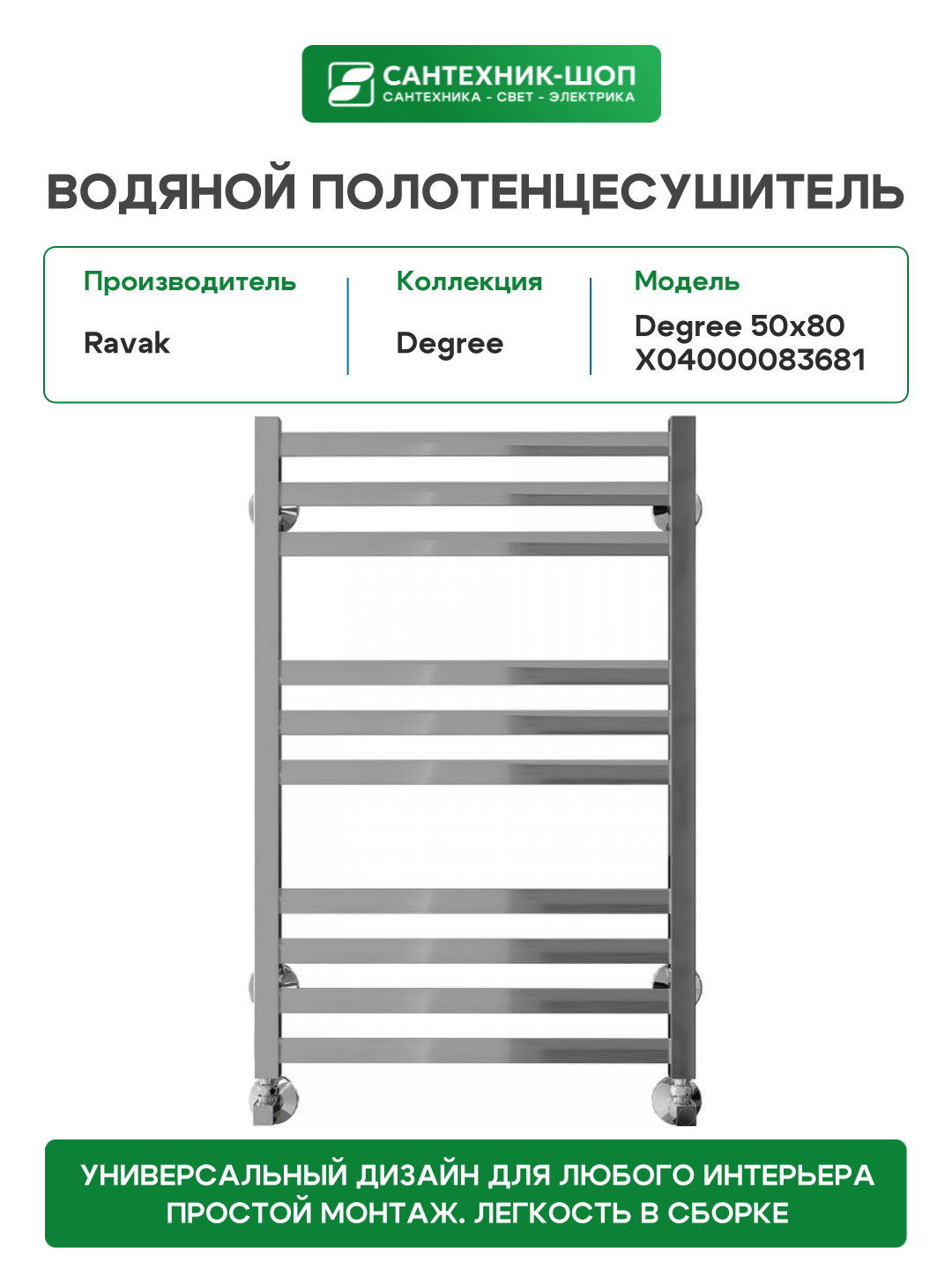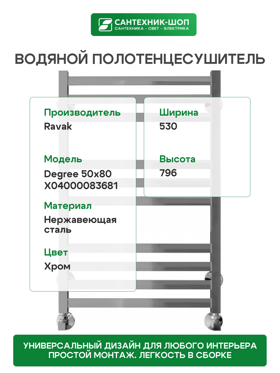 Водяной полотенцесушитель Ravak Degree 50х80 X04000083681 Хром нержавеющая сталь: сравнение цен, характеристики, фото, актуальное наличие и цены.