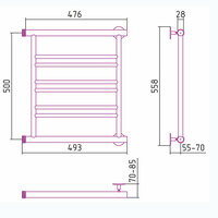 Полотенцесушитель водяной INDIGO Line с полкой 70/40 межосевое расстояние 60 боковое подключение слева
