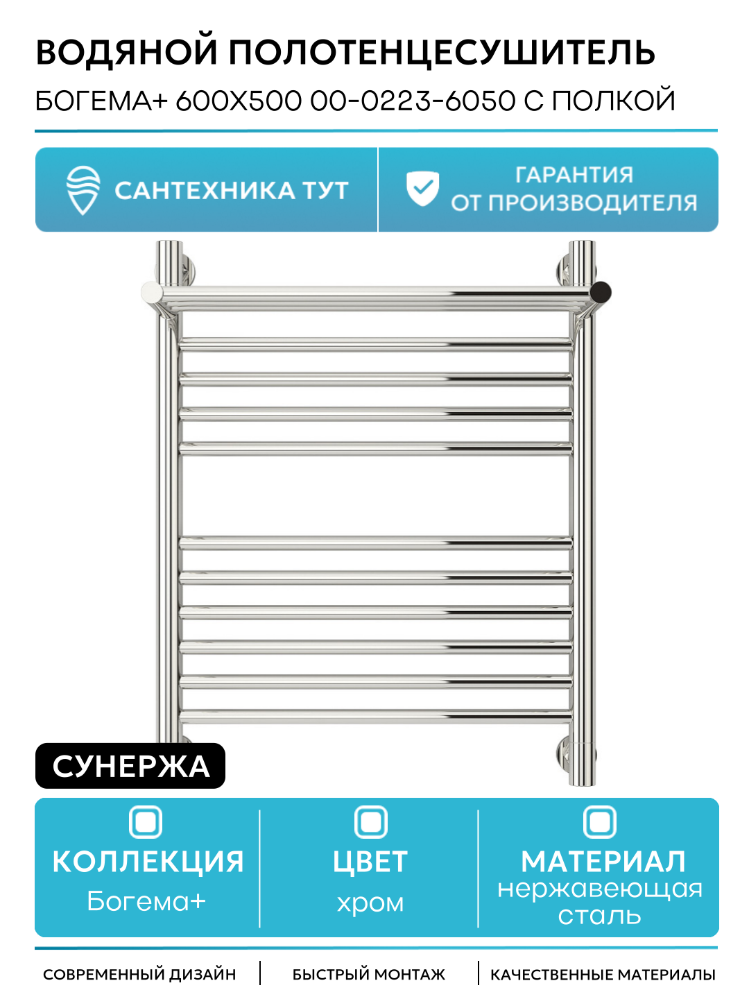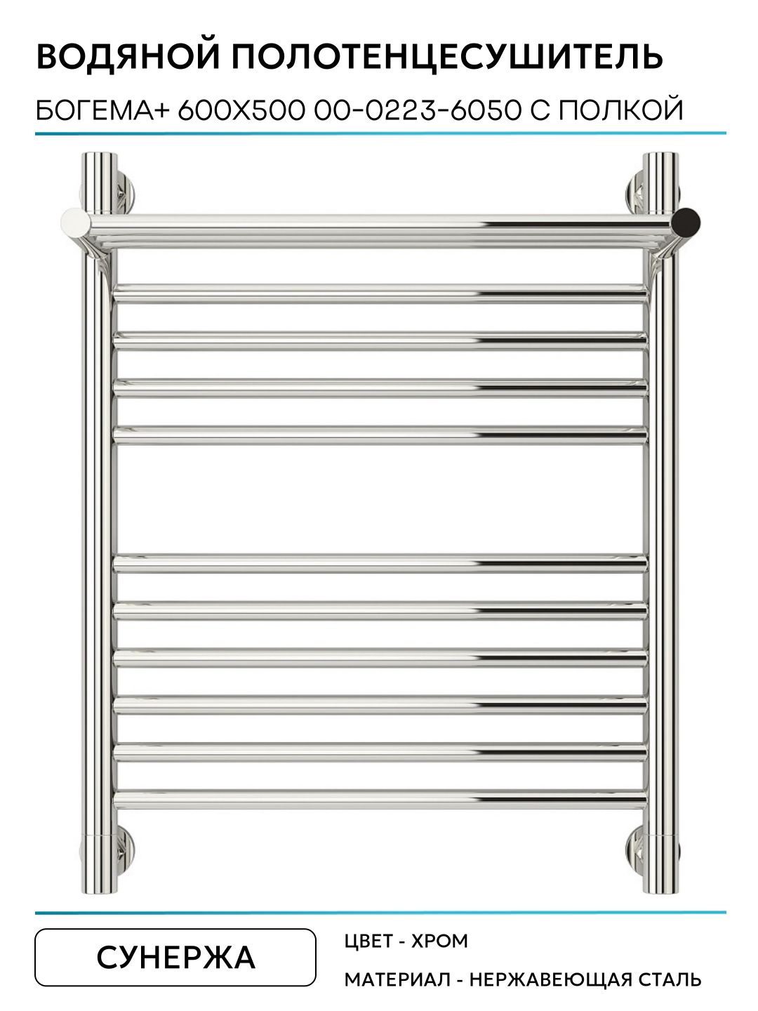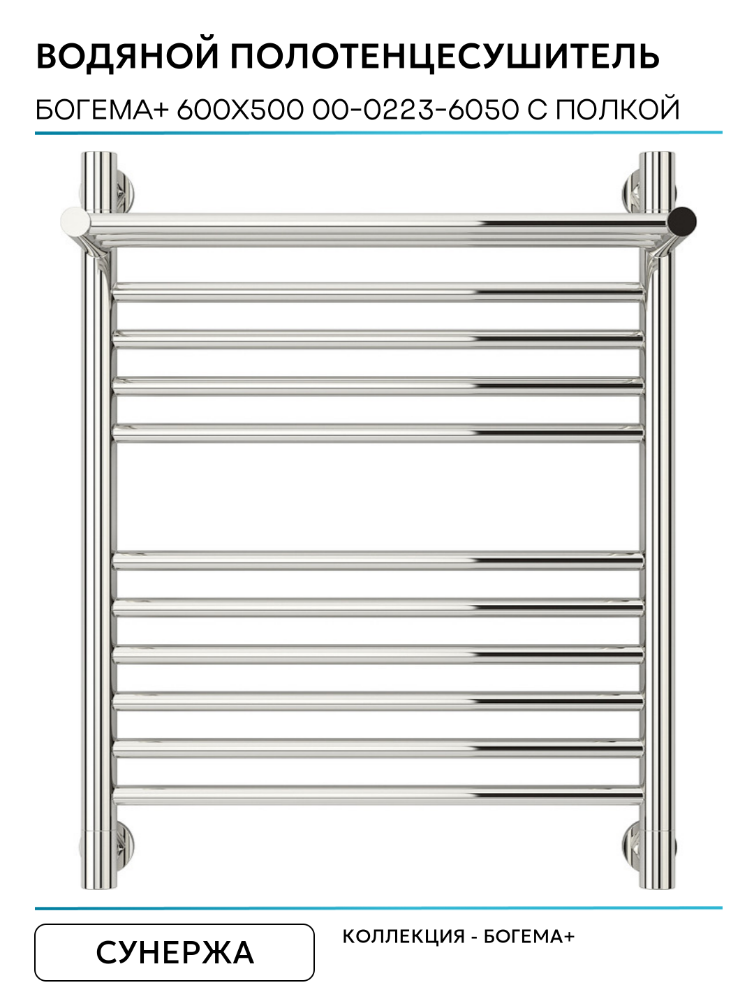 Полотенцесушитель водяной Сунержа Богема с полкой+ 600х500 Сатин
