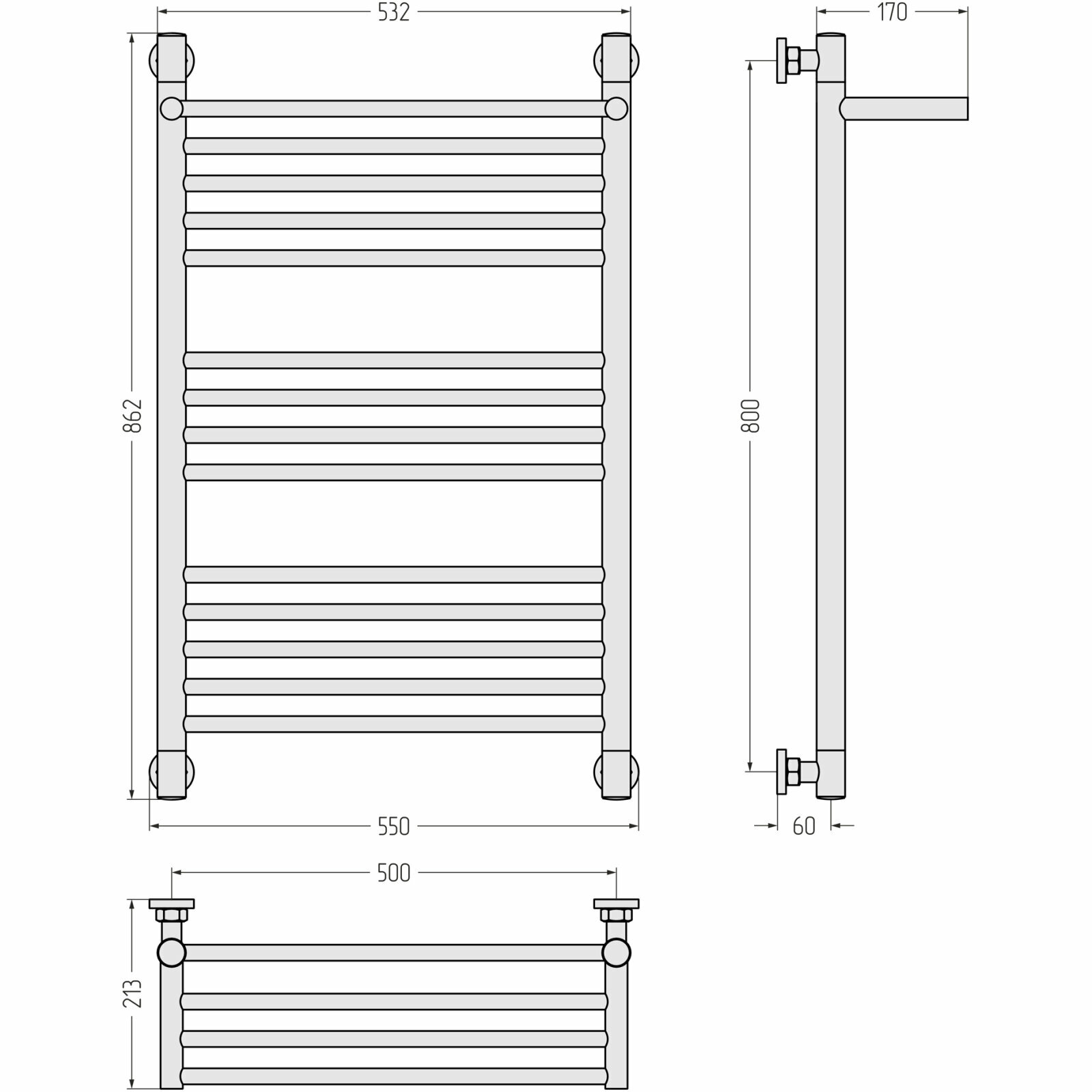 Купить Полотенцесушитель водяной Сунержа Богема с полкой+ 800х500 Без покрытия с доставкой по всей России.
