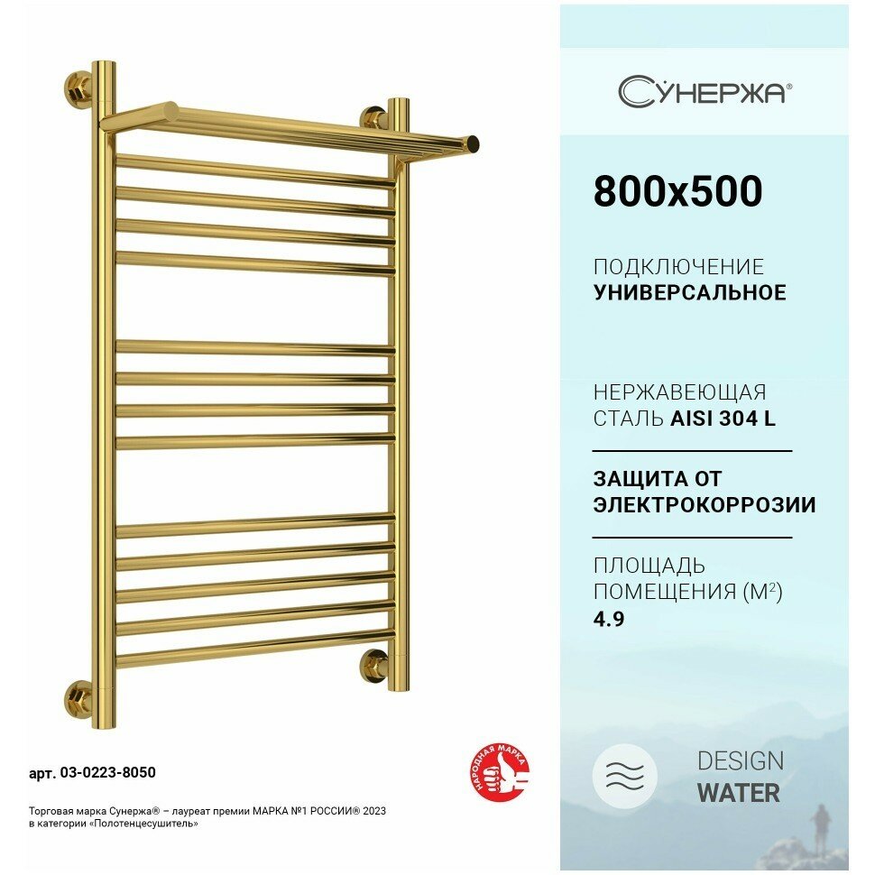 Водяной полотенцесушитель Сунержа Богема с полкой+ 800х500 золото: сравнение цен, характеристики, фото, актуальное наличие и цены.