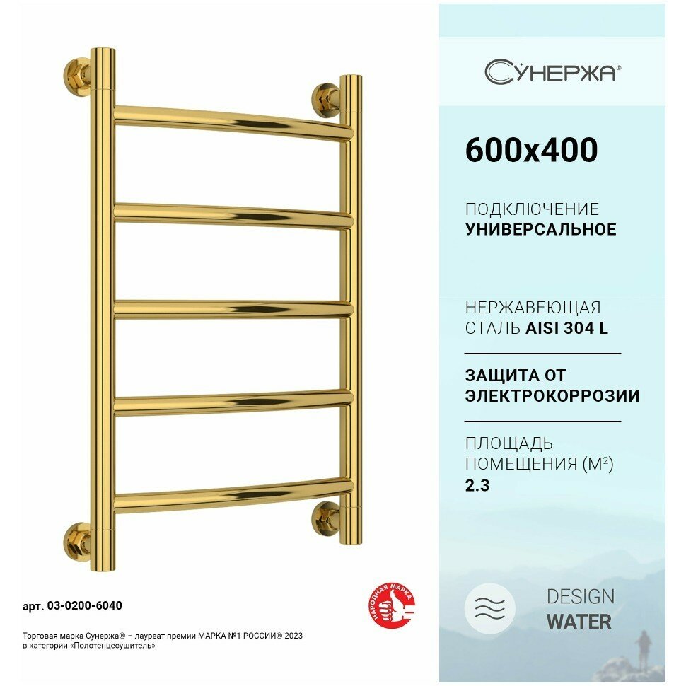 Водяной полотенцесушитель Сунержа Галант+ 600х400 032-0200-6040 Матовое золото
