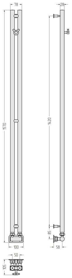 Температура теплоносителя: до 95 °СРабочее давление: от 3 до 15 атмИспытательное давление: 25 атмТеплоотдача: 203 КвтМаксимальная нагрузка: до 5 кгОбъем помещения: 5.08 м3Межосевое расстояние по Y: 50 ммМежосевое расстояние по Х: 50 ммВнешние габариты: 1570x100x106 ммГабариты в упаковке: 1540х120х120 ммЦвет: темный титан муар
