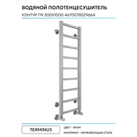 Купить Водяной полотенцесушитель Terminus Контур П9 300х1000 4670078529664 Хром, нижнее подключение, G 1/2″ ВР, с угловым соединением с доставкой по всей России.