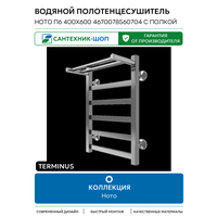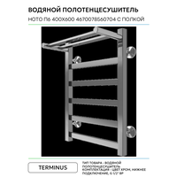 Купить Водяной полотенцесушитель Terminus Ното П6 400х600 4670078560704 с полкой цвет Хром, нижнее подключение, G 1/2″ ВР с доставкой по всей России.