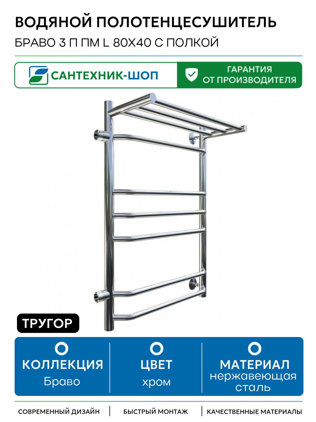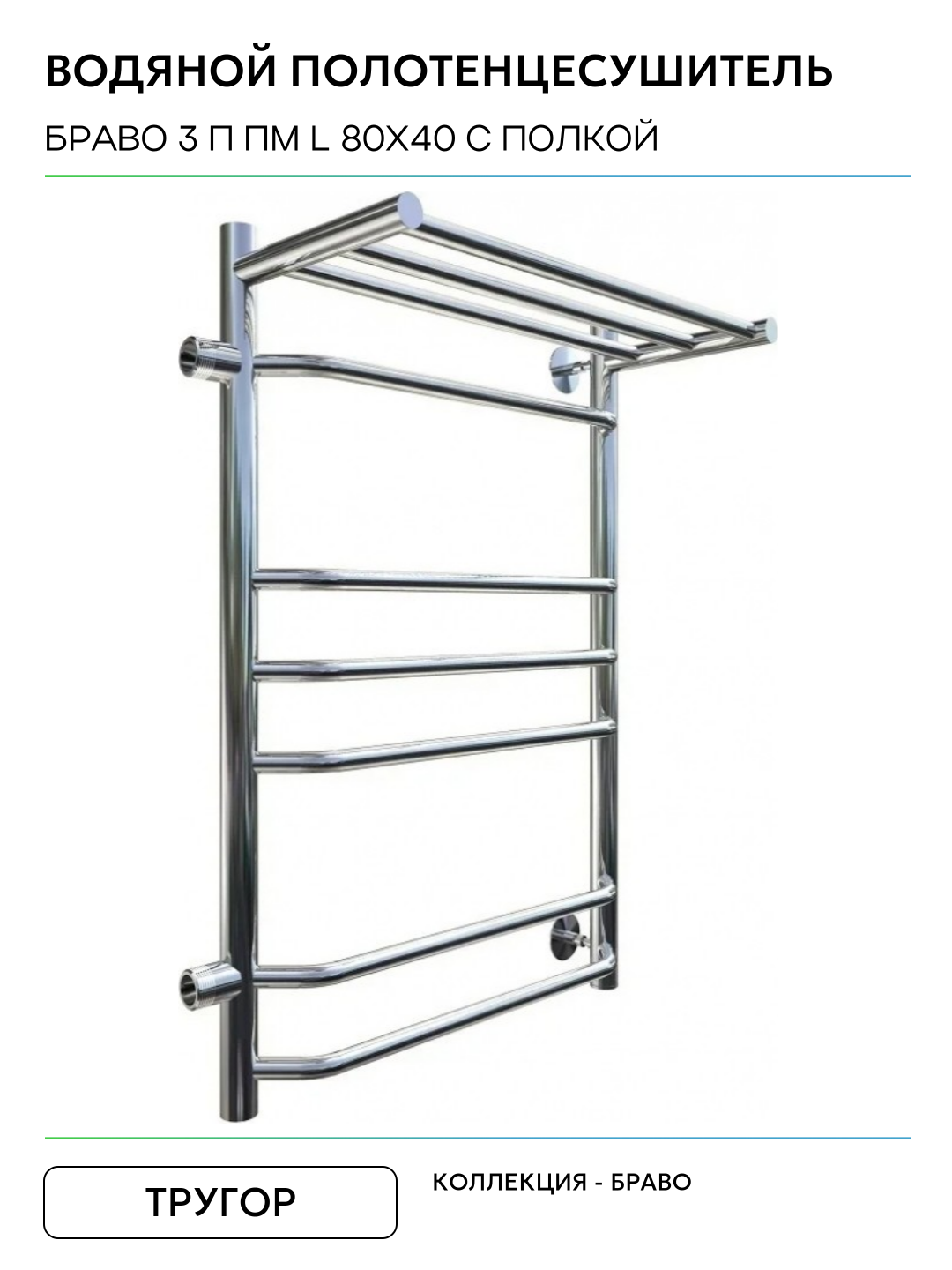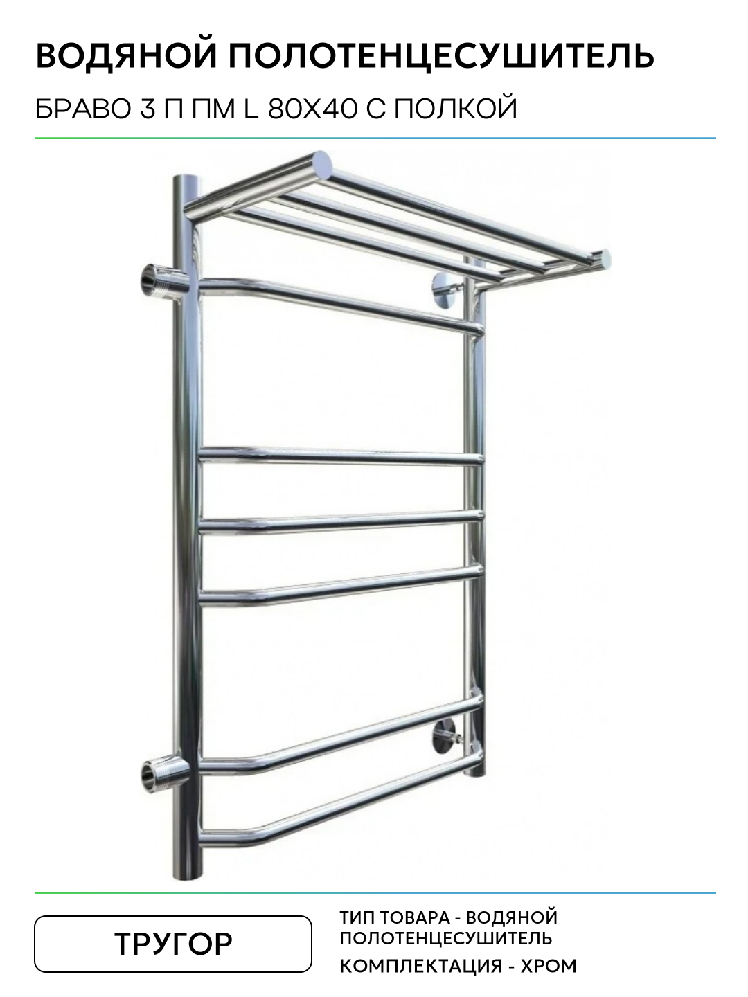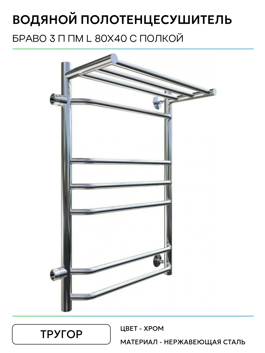 Водяной полотенцесушитель Тругор Браво 3 П ПМ L 80×40 с полкой Хром нержавеющая сталь: сравнение цен, характеристики, фото, актуальное наличие и цены.