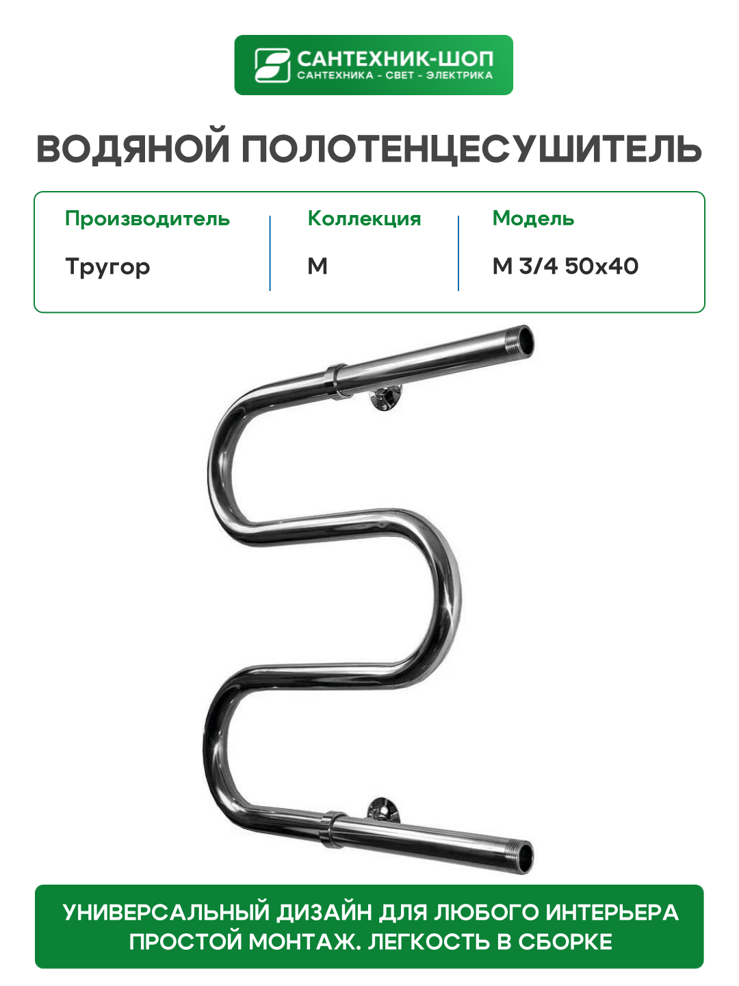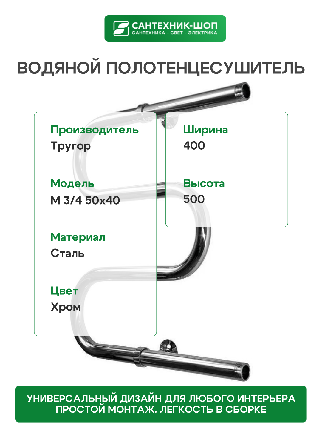 Водяной полотенцесушитель Тругор М 3/4 50×40 Хром: сравнение цен, характеристики, фото, актуальное наличие и цены.