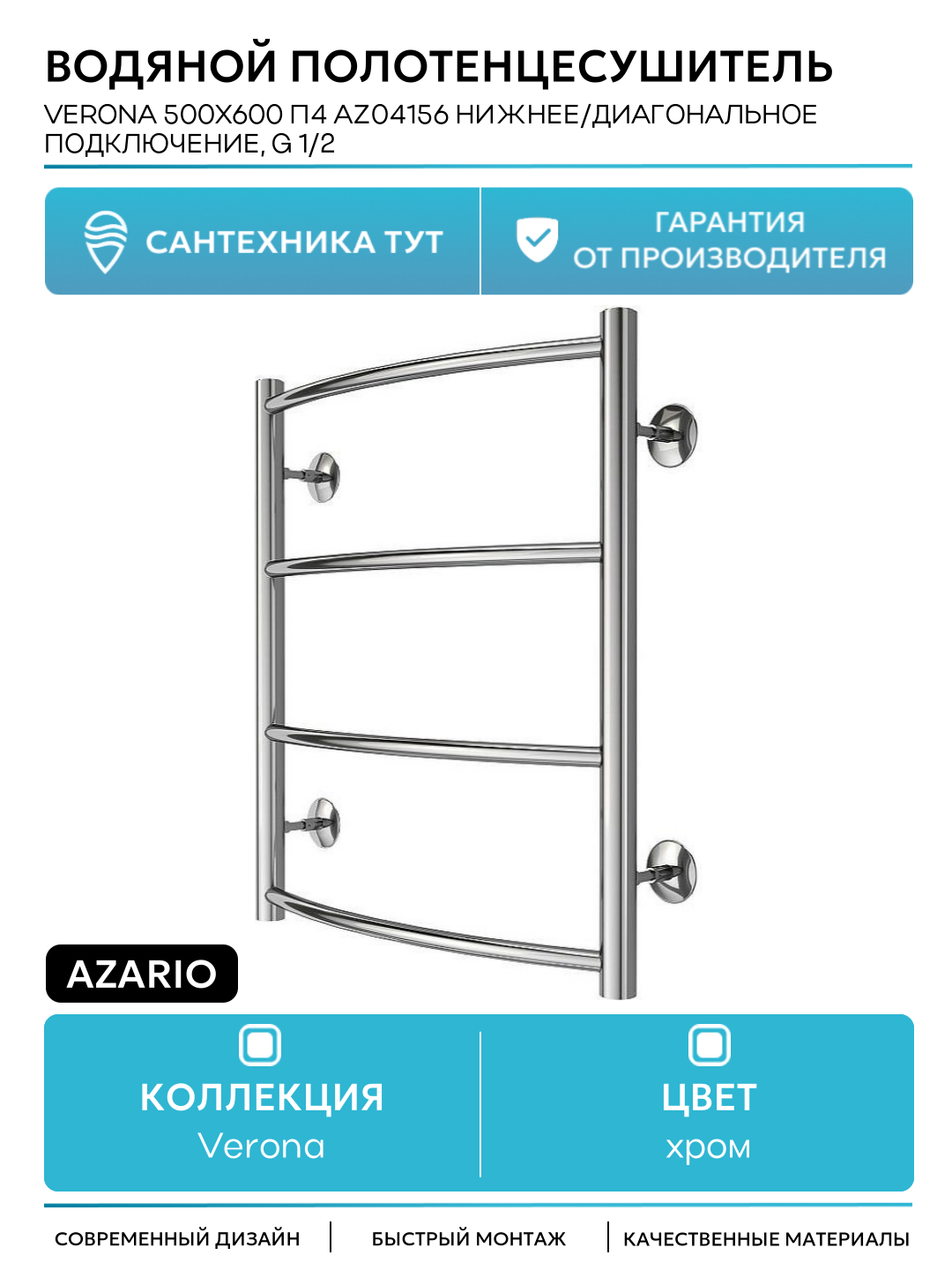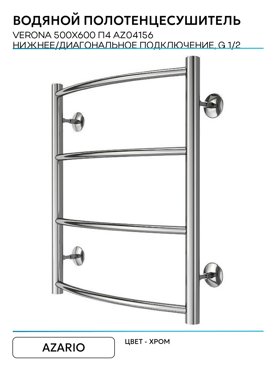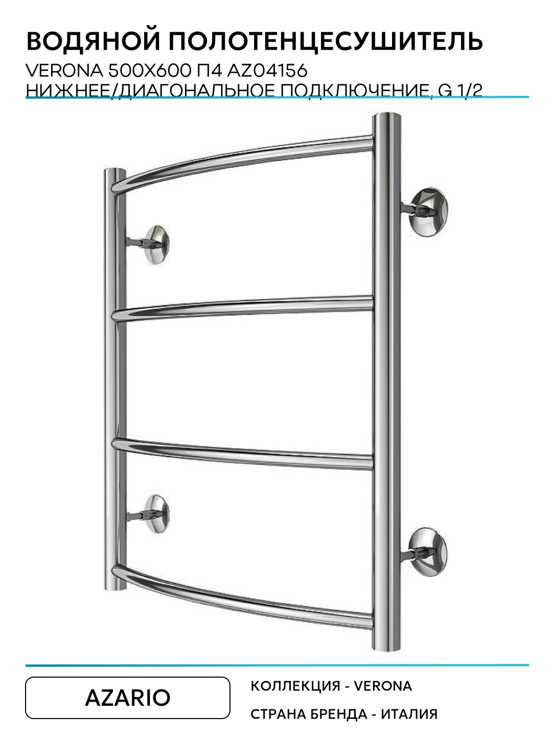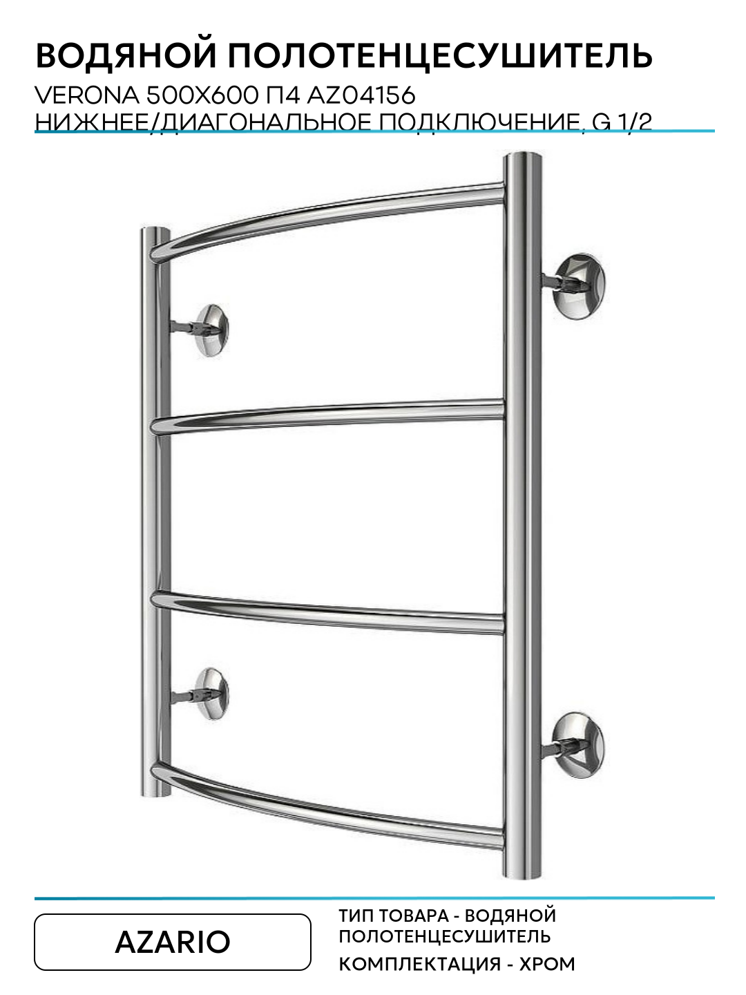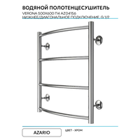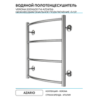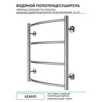 Водяной полотенцесушитель Azario Verona 500×600 П4 AZ04156 нижнее/диагональное подключение, G 1/2 Хром: сравнение цен, характеристики, фото, актуальное наличие и цены.