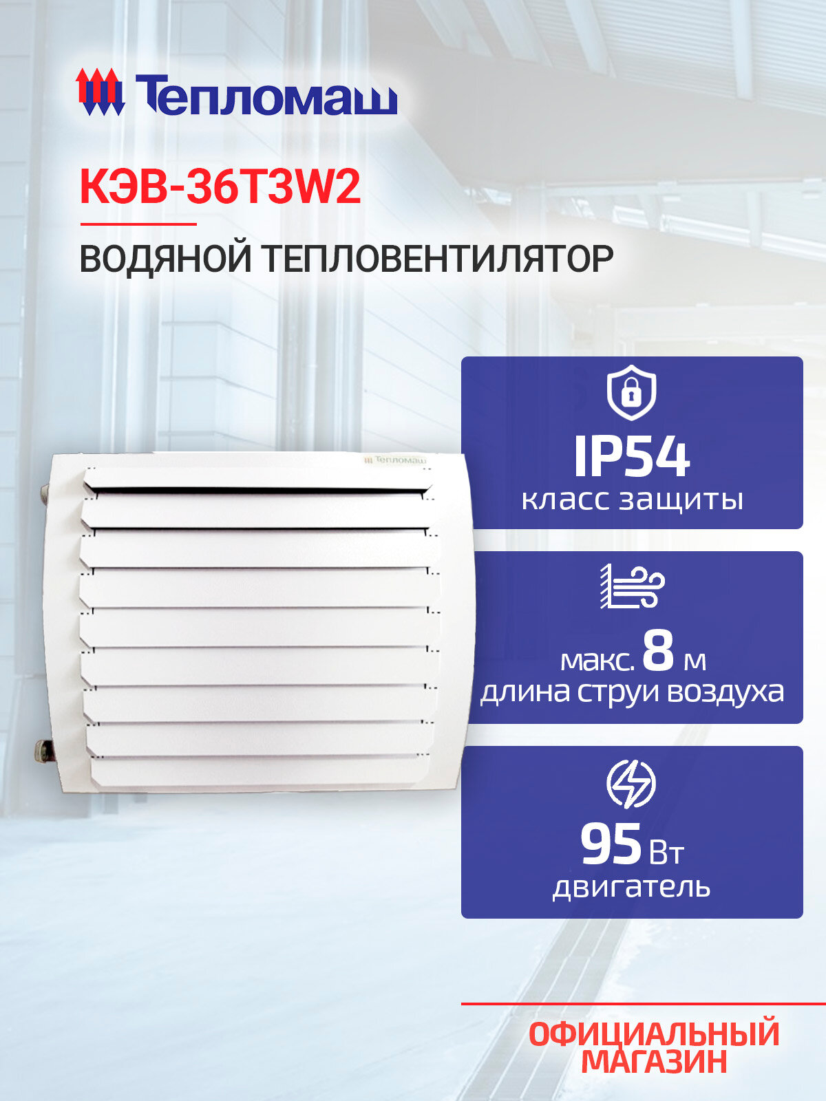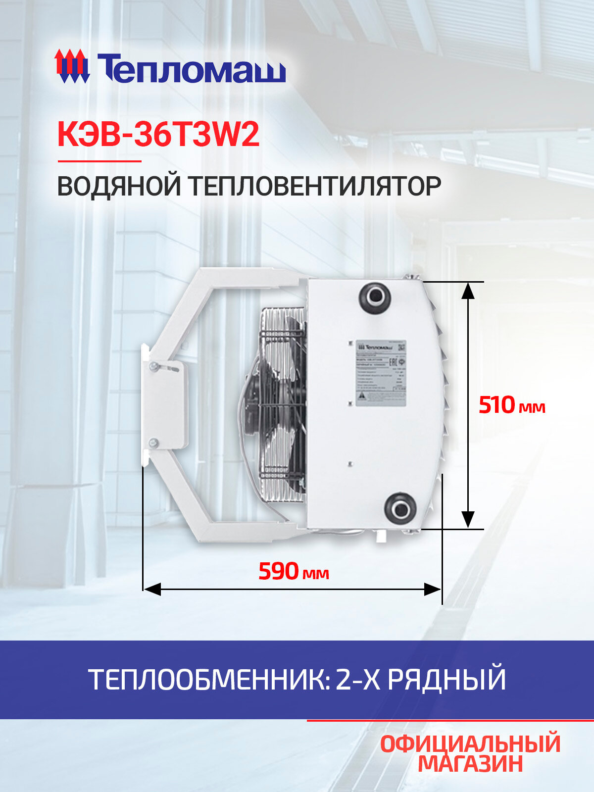 Водяной тепловентилятор Тепломаш КЭВ-36T3W2, с пультом и креплением, IP54: сравнение цен, характеристики, фото, актуальное наличие и цены.