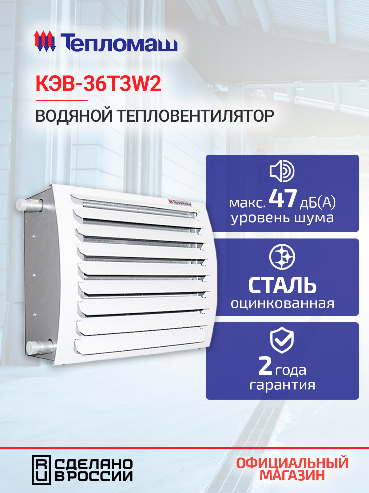 Купить Водяной тепловентилятор Тепломаш КЭВ-36T3W2, с пультом и креплением, IP54 с доставкой по всей России.