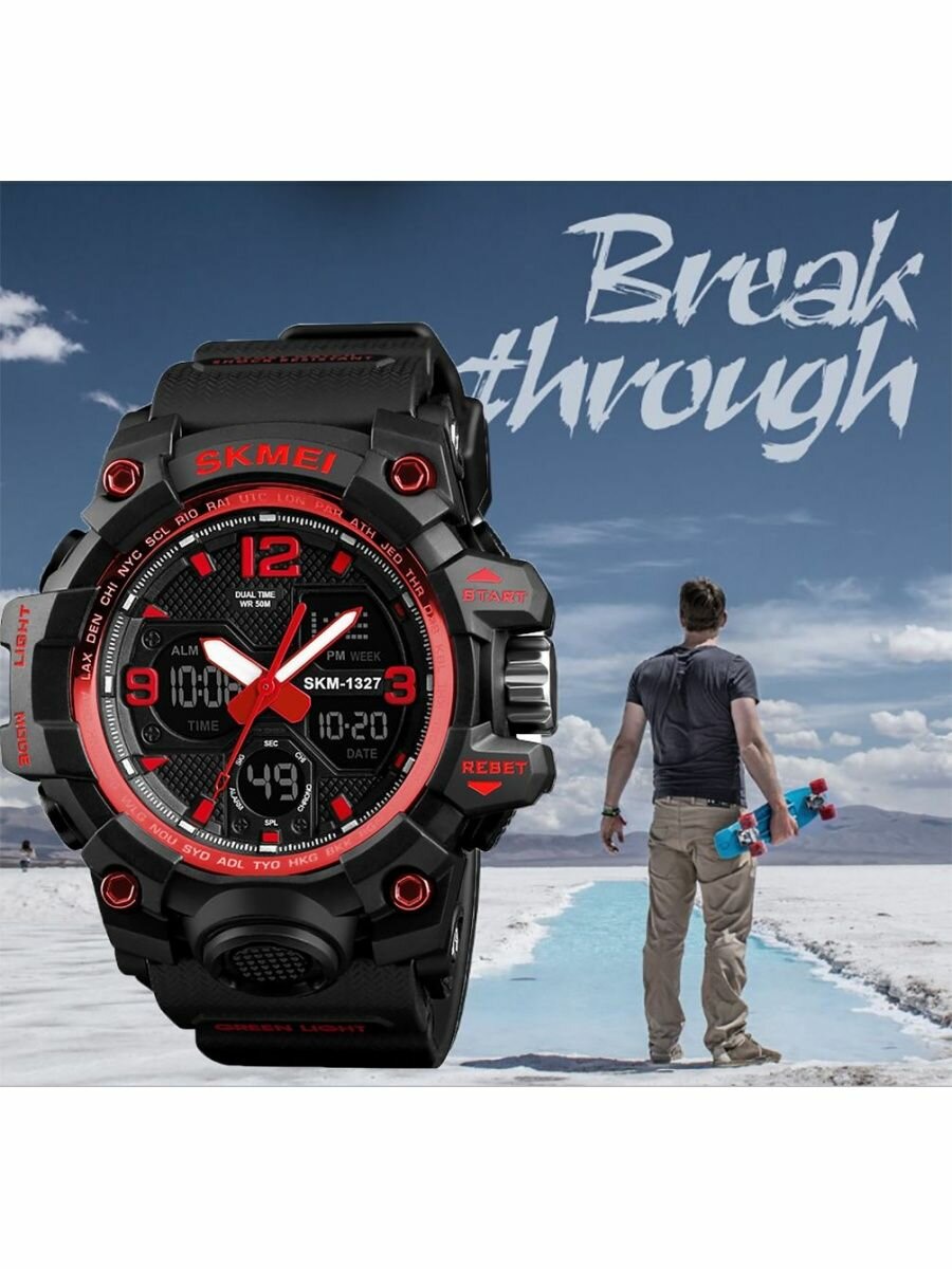 пол: мужской, женский, циферблат: аналоговый + цифровой, материал браслета: полимер, особенности: антибликовое покрытие стекла, морозоустойчивость, водонепроницаемые, ветрозащитные, LED-дисплей, противоударные, подсветка стрелок, бесшумный механизм