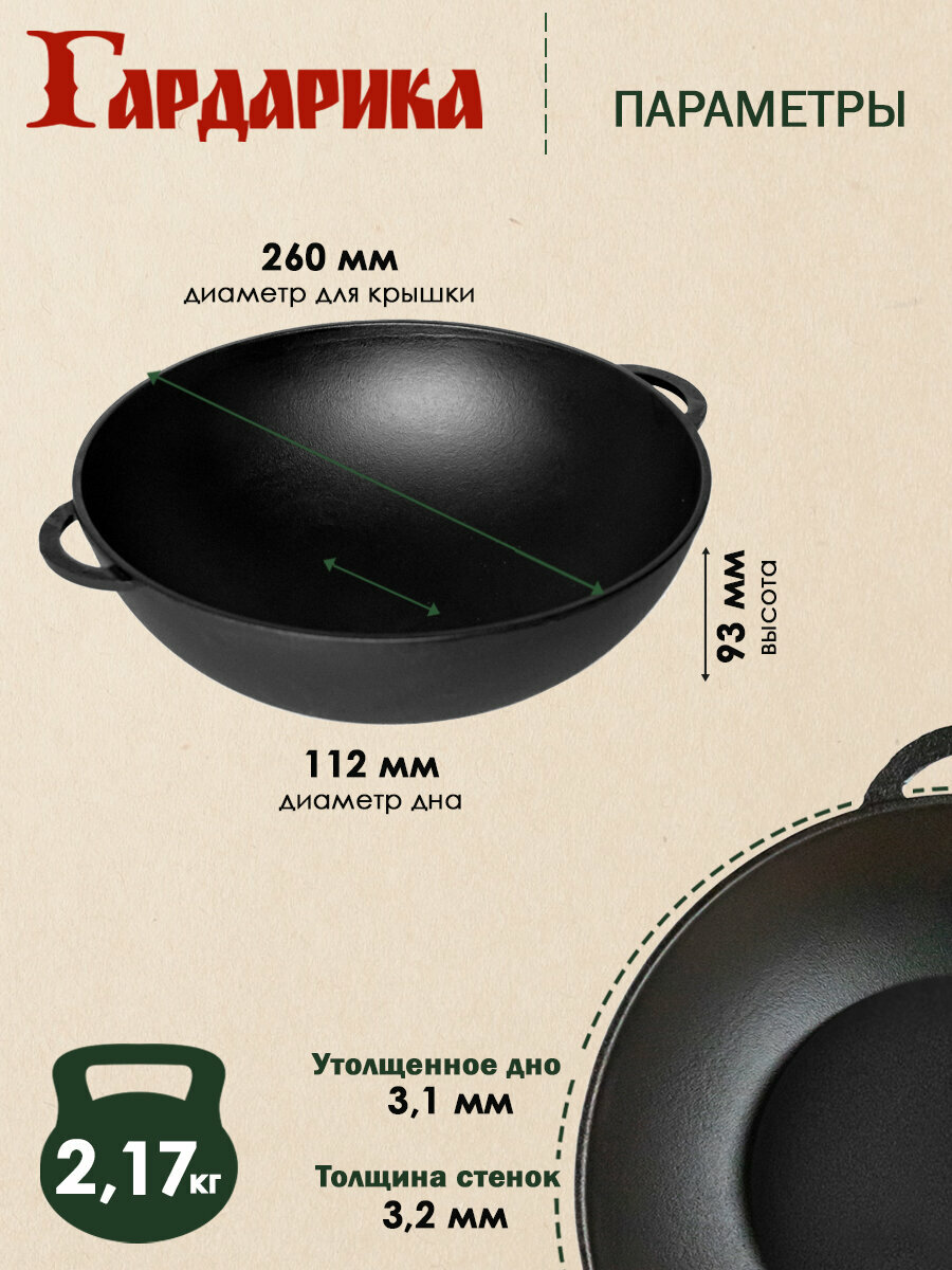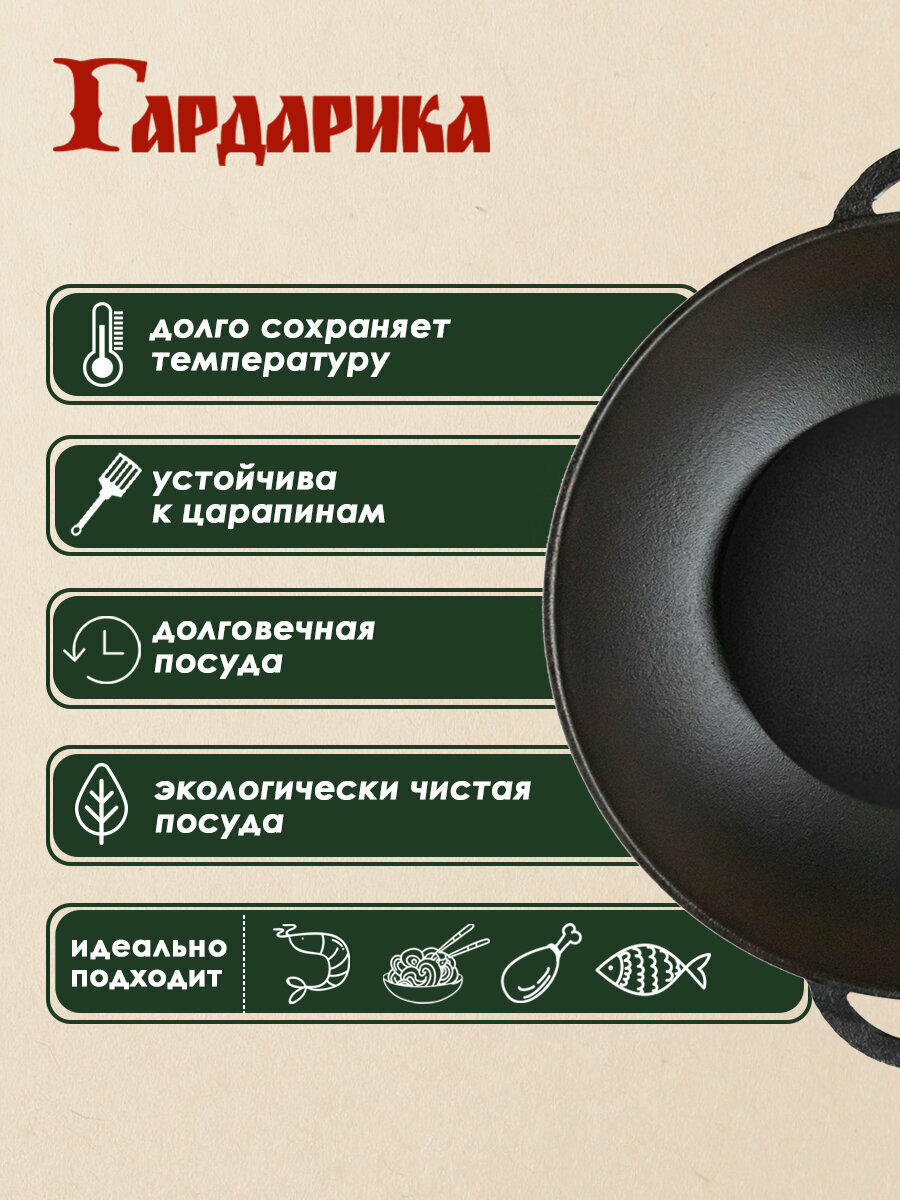 Вок Гардарика 1026 чугунный с двумя литыми ручками, 26см - это высококачественная посуда, которая станет незаменимым помощником на вашей кухне.