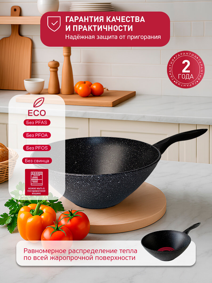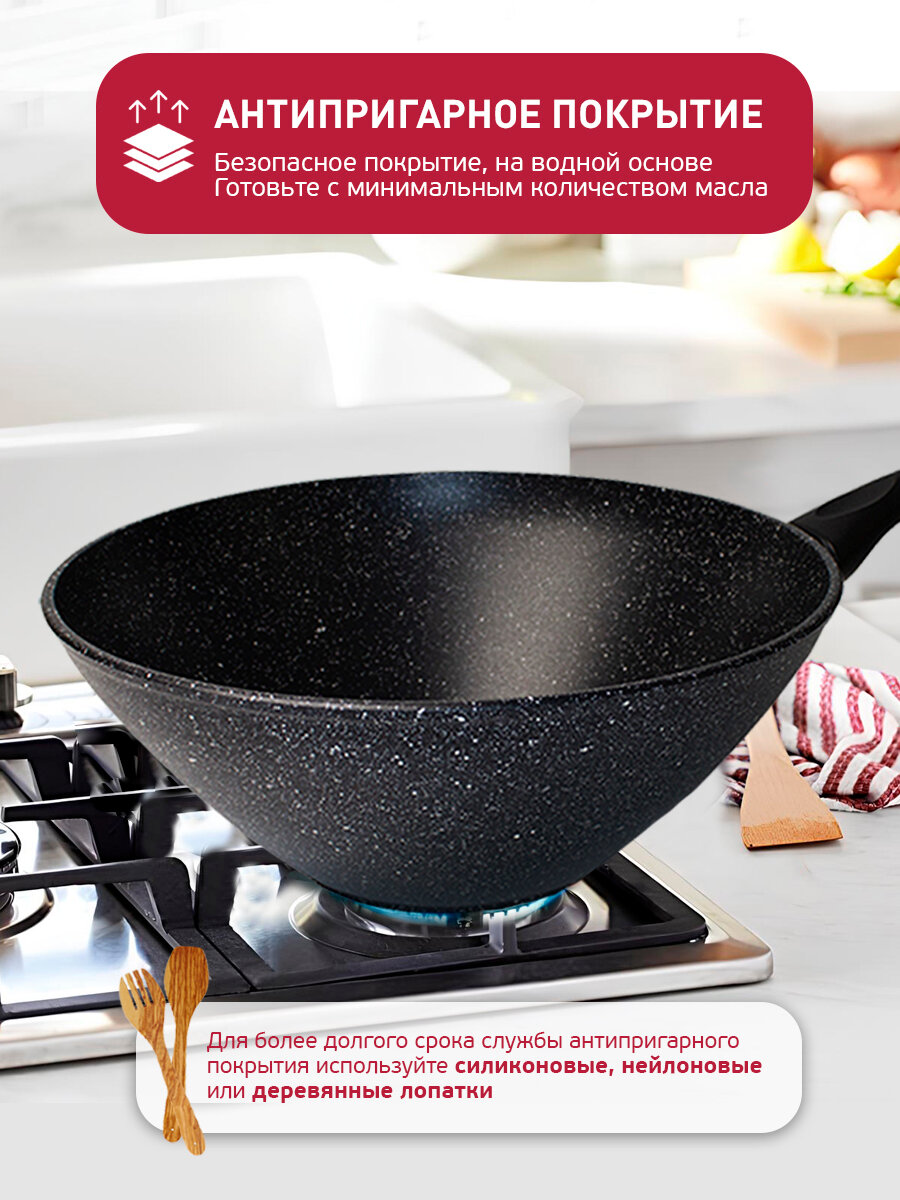 Купить Вок сковорода 28см, WOK с антипригарным покрытием, Классическая каменная с доставкой по всей России.