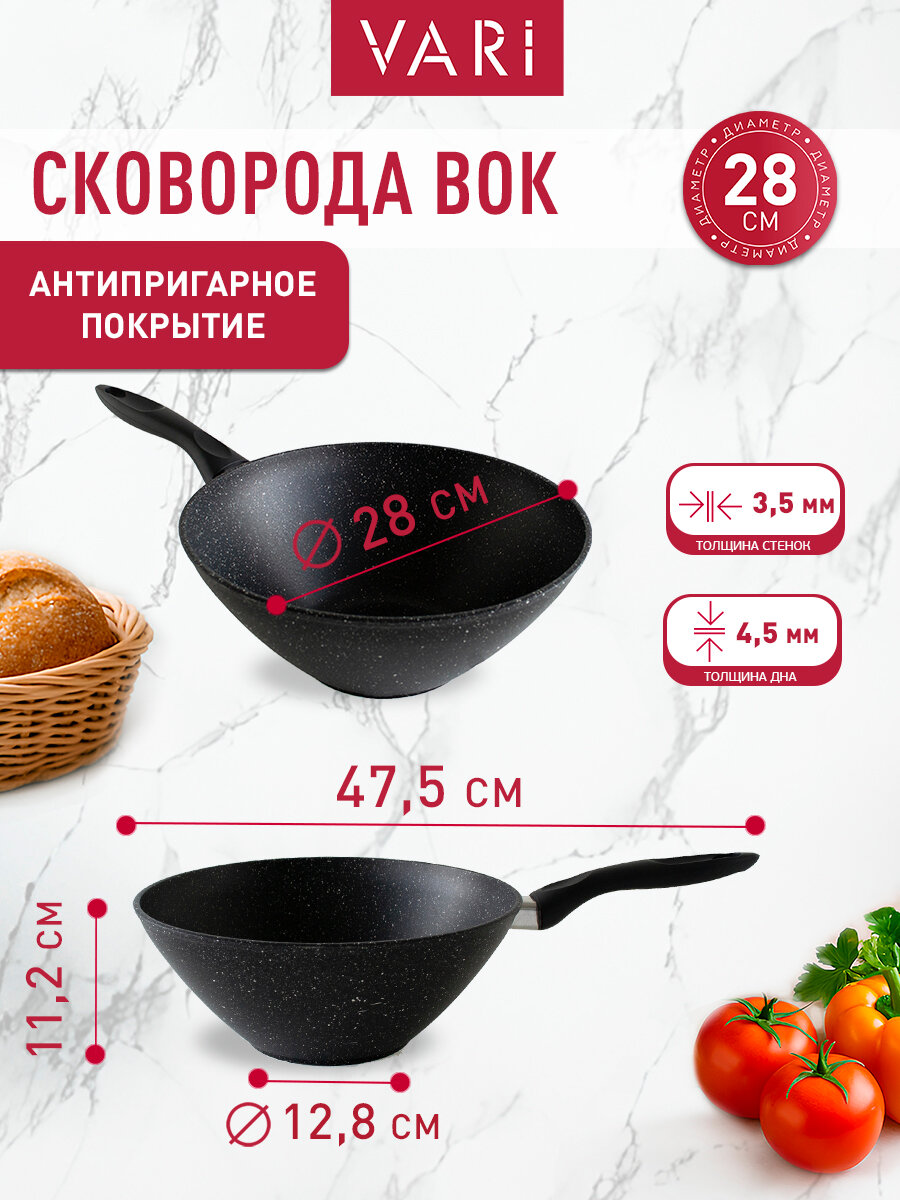 Вок сковорода 28см, WOK с антипригарным покрытием, Классическая каменная: сравнение цен, характеристики, фото, актуальное наличие и цены.
