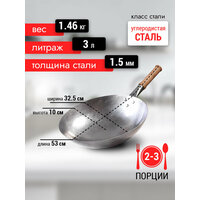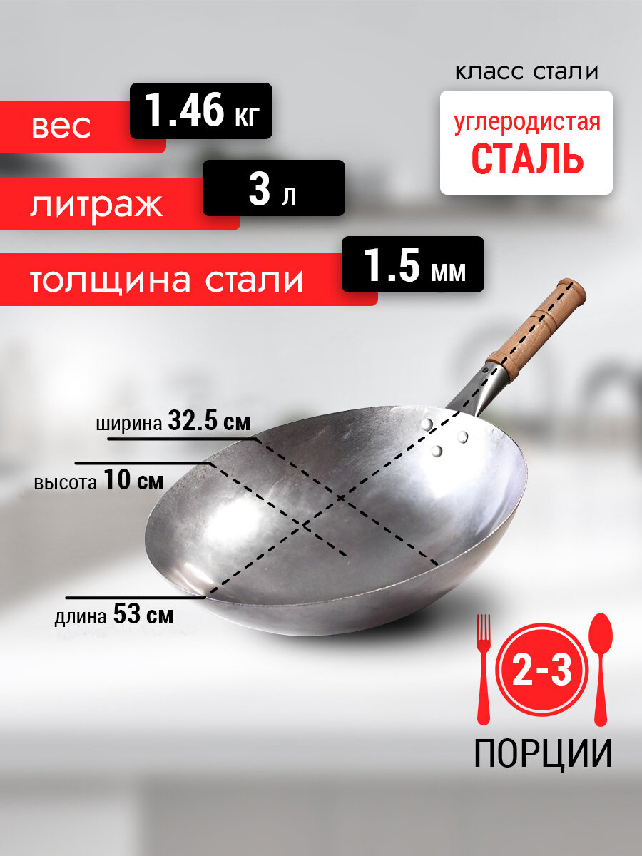Традиционная кованная китайская сковорода – вок. Изготовлена из углеродистой стали с толщиной 1,5 мм.