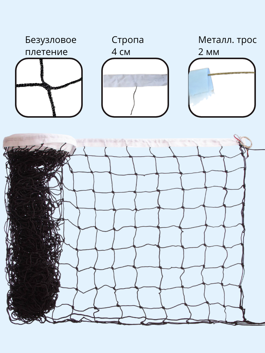 Волейбольная сетка, 9.5×1 м, с металлическим тросом, черная, в сумке. /REV-5/: сравнение цен, характеристики, фото, актуальное наличие и цены.