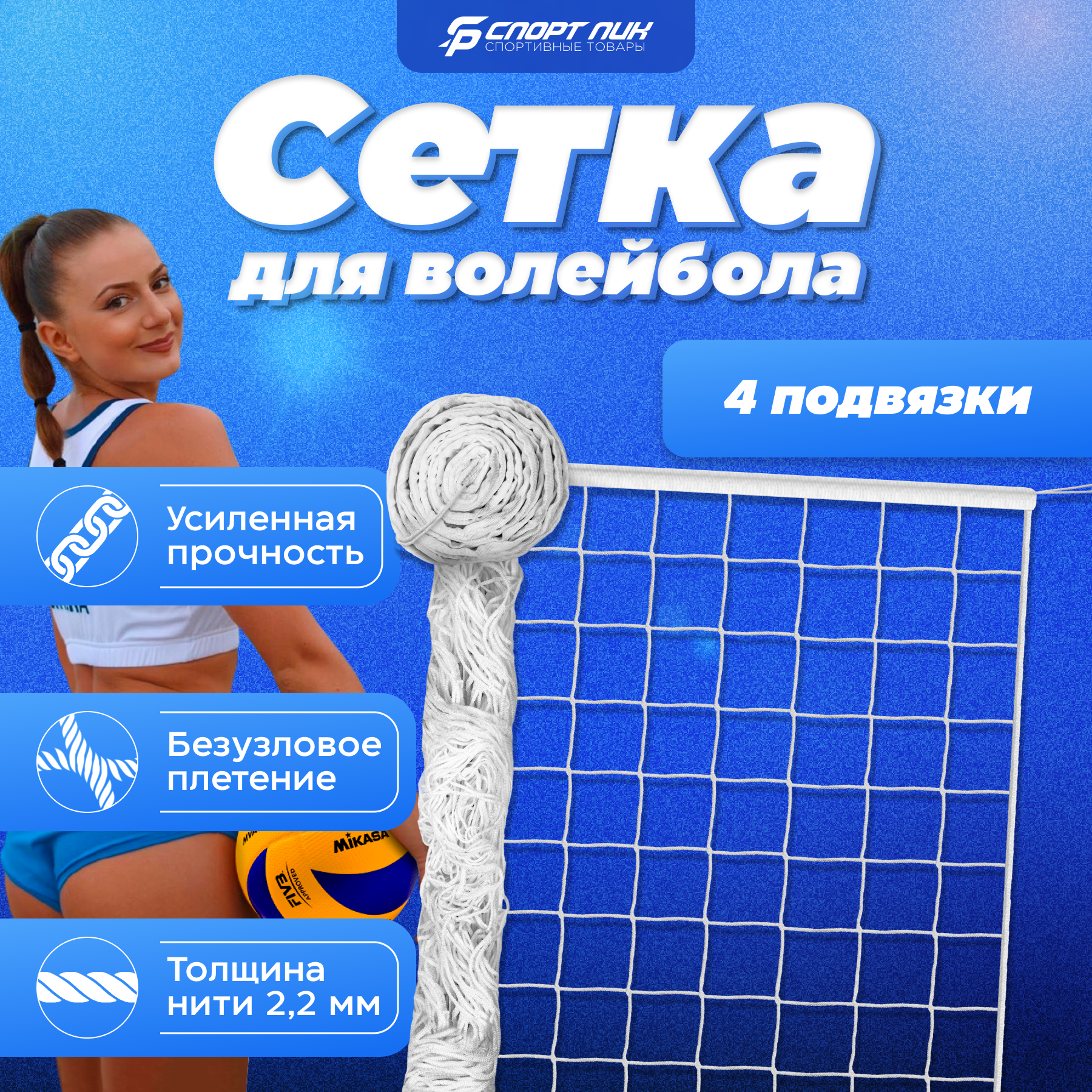 Купить Волейбольная сетка СпортПик для улицы 9.5х1 м, 4 подвязки, нить 2,2 мм. с доставкой по всей России. Волейбольная сетка СпортПик для улицы 9.5х1 м, 4 подвязки, нить 2,2 мм.: сравнение цен, характеристики, фото, актуальное наличие и цены.